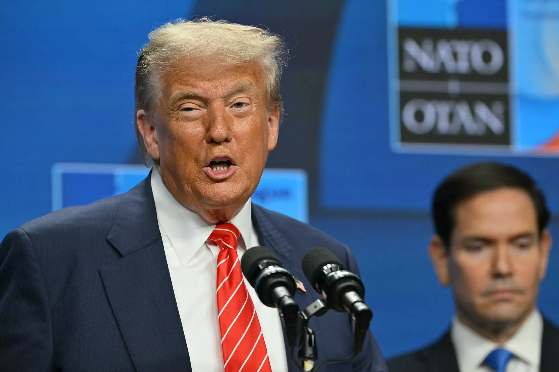 唐納德·特朗普總統週三在海牙舉行新聞發佈會後。