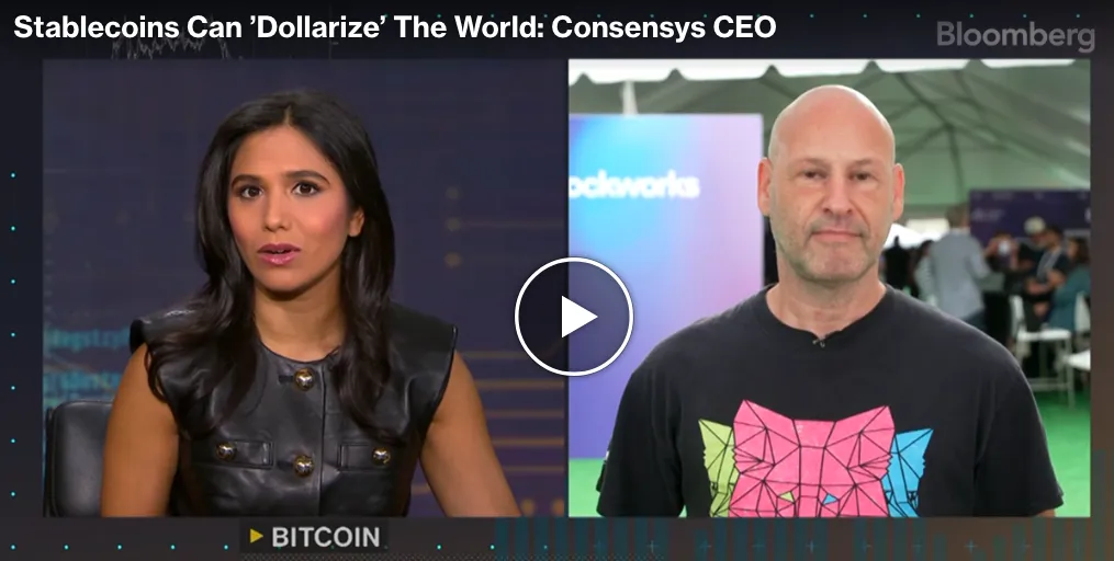 以太坊聯合創始人兼Consensys首席執行官Joe Lubin討論穩定幣,並表示它們可以“美元化”世界,併為美國帶來變革。他與Sonali Basak和Tim Stenovec進行了現場對話。### 更多來自彭博的內容