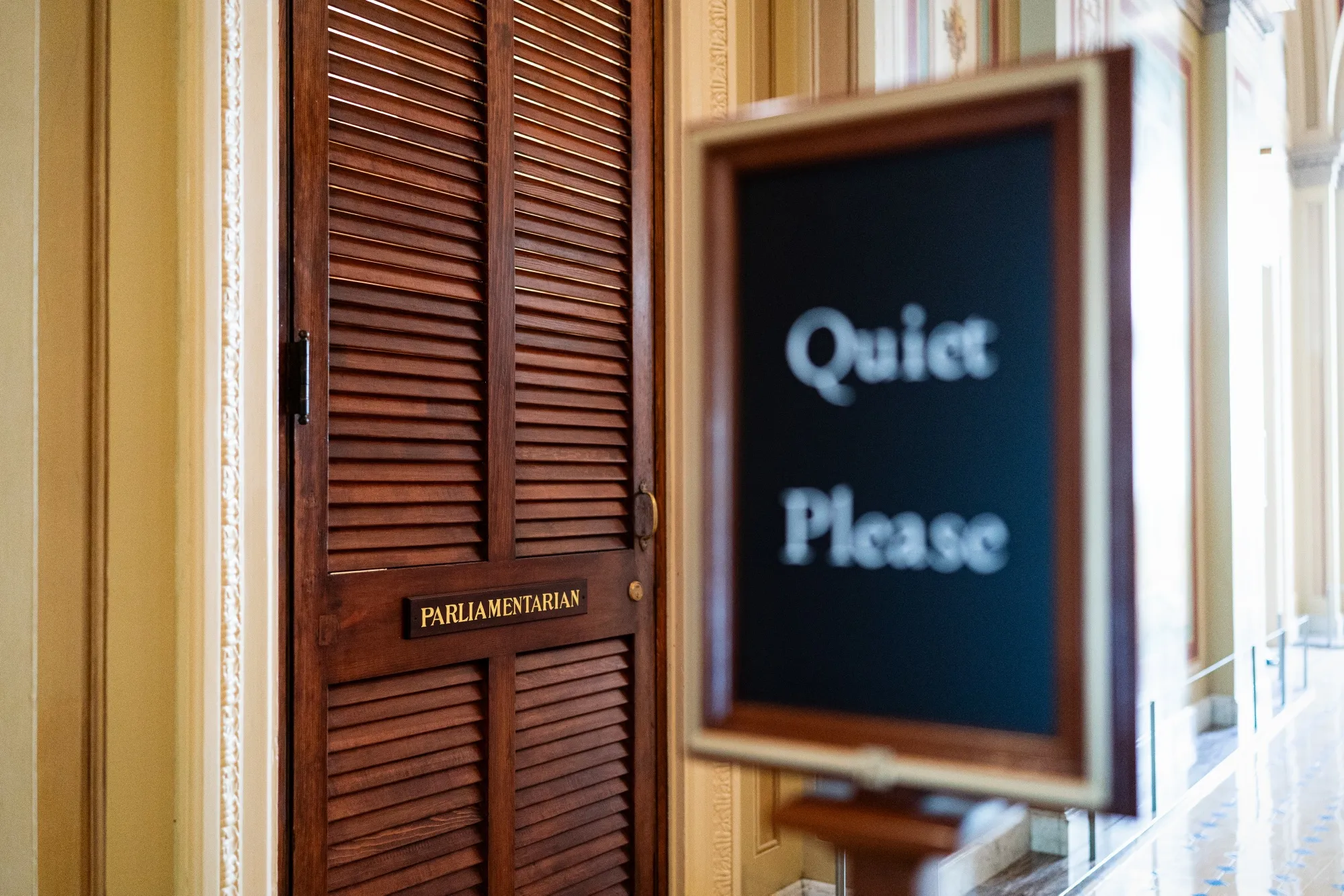 華盛頓美國國會大廈參議院議事專家辦公室大門攝影師:阿爾·德拉戈/彭博社議事專家會評估條款是否涉及非預算內容而應刪除,其判斷依據包括現行議事規則和歷史先例。
