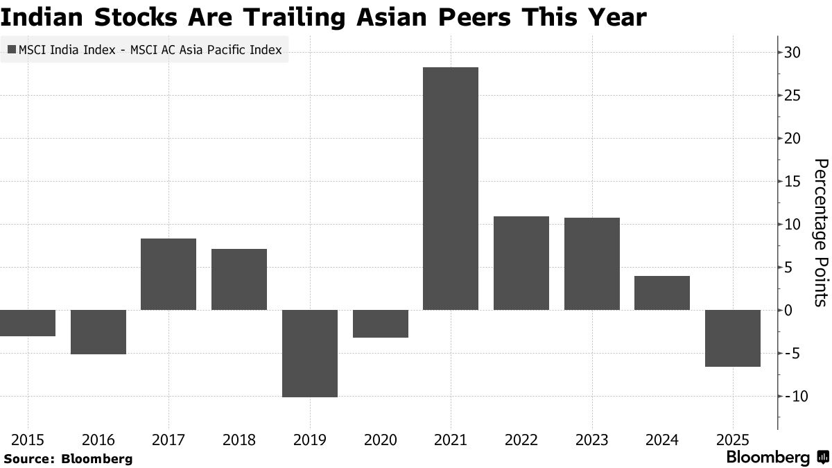 對混合基金日益增長的需求可能表明,在這個世界上人口最多的經濟體,股票投資的巨大受歡迎程度開始減弱。散户投資者資金流入股市一直是推動MSCI印度指數在過去六年中實現年均近15%漲幅的因素之一,表現優於全球大多數同行。