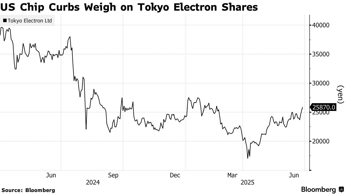 彭博行業研究分析師Masahiro Wakasugi表示,美國主導的一系列限制中國獲取芯片設備及能力的措施,令投資者擔憂這家日本公司——去年曾一度有近半數營收來自中國——可能突然被迫中止與中國客户的業務往來。東京電子股價較一年前下跌約25%。