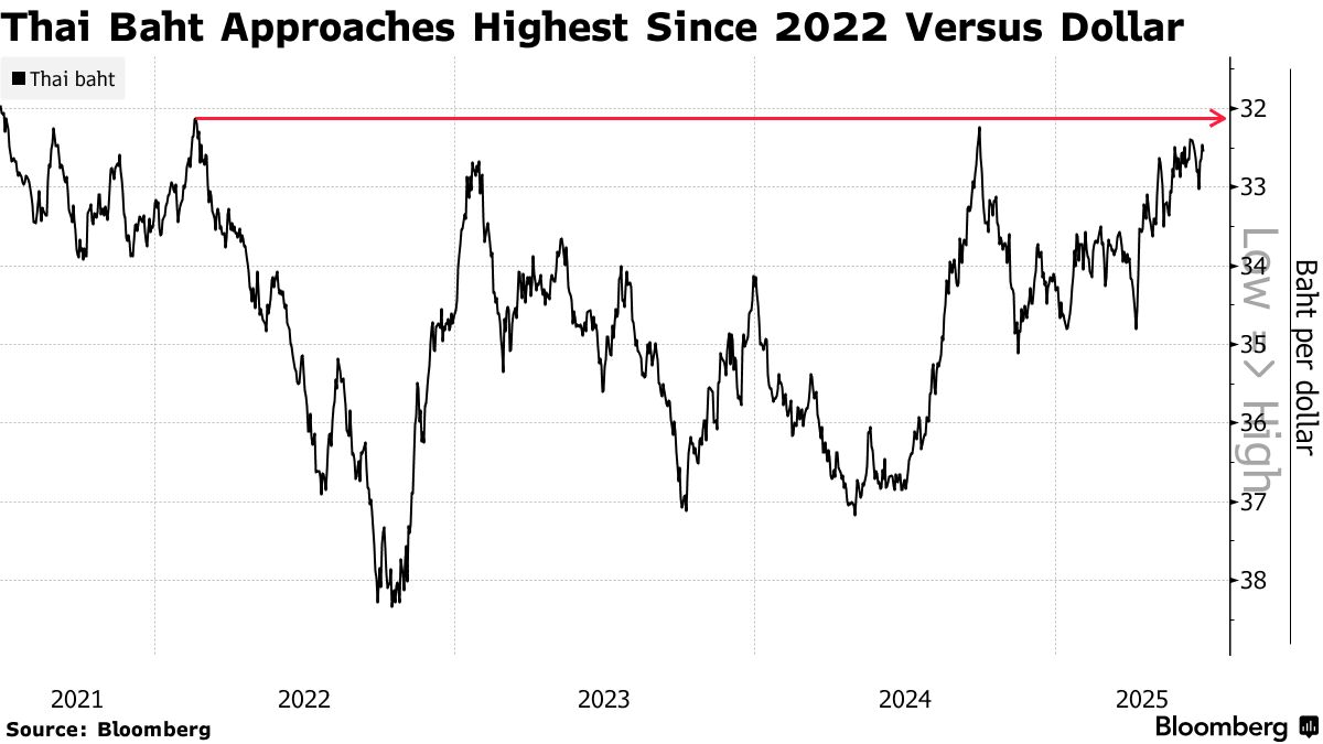 今年以來泰銖已升值約5%,促使部分部長和商業團體呼籲央行干預匯率以提振出口和旅遊業——這兩大產業是泰國經濟增長的主要驅動力。