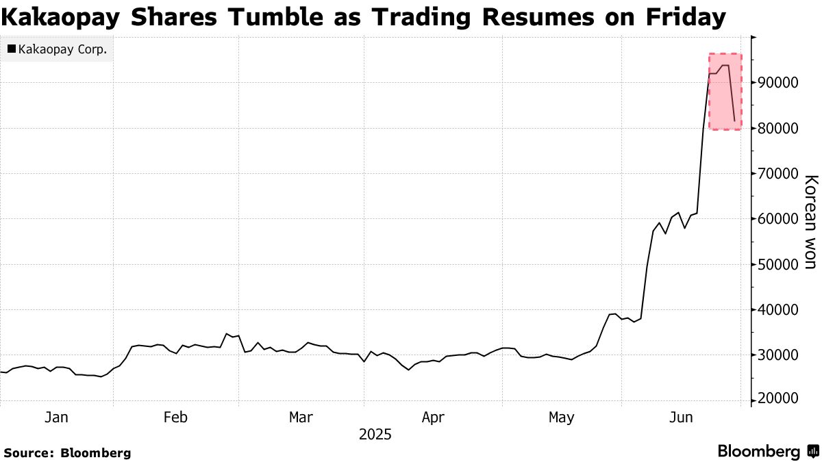 韓國Kakaopay公司的股票在因可能涉足穩定幣領域而受到投資者熱捧、近期大幅上漲後,於暫停交易一天後恢復交易時跌幅高達17%。