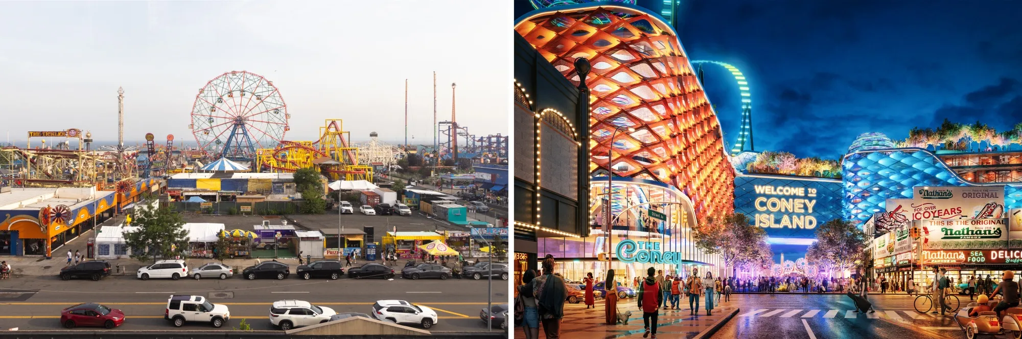 康尼島項目將選址於著名海濱步道附近。攝影師:尤夫拉吉·卡納。效果圖:FXCollaborativeThor Equities、薩拉託加賭場控股公司、奇克索族部落和Legends公司正聯手競標布魯克林老牌娛樂中心康尼島34億美元的開發項目。提案包括500間客房的酒店、2400座音樂場館及本地商户專屬區域。競標方表示,該項目能打破傳統淡季經濟停滯局面,為社區提供全年活力。
