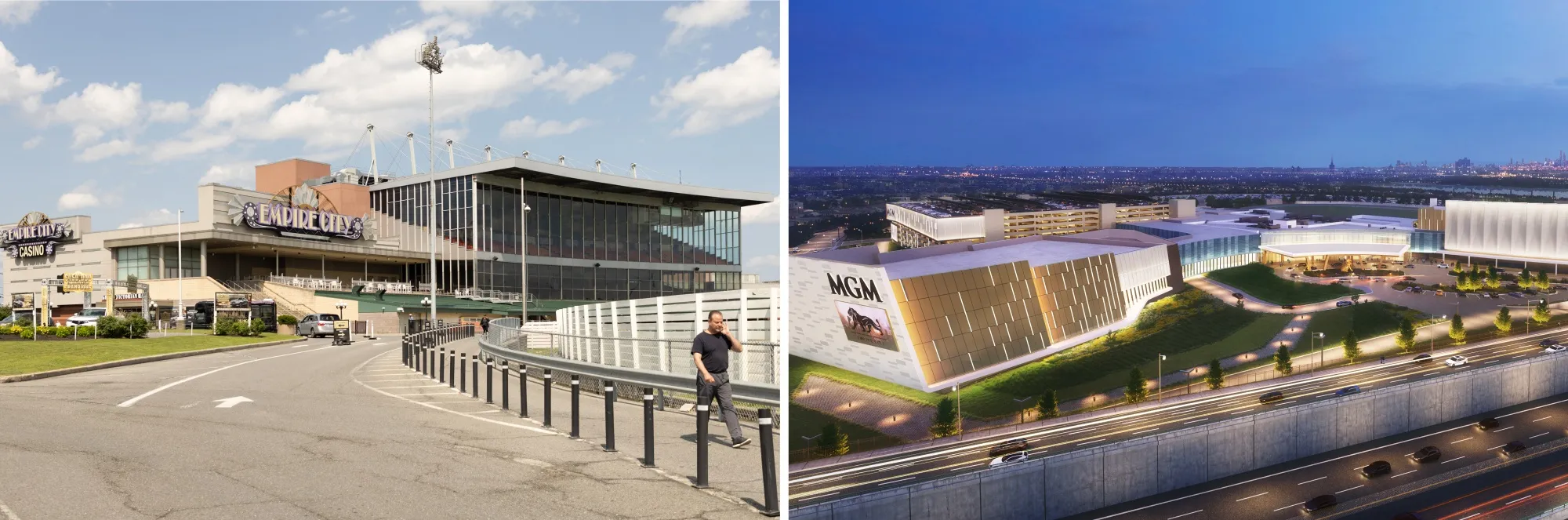 帝國城賭場的提案還計劃在賽馬場附近的現有物業基礎上進行擴建。攝影師:尤夫拉吉·康納/彭博社。效果圖:美高梅度假村集團旗下帝國城賭場美高梅國際酒店集團——拉斯維加斯大道上最大的賭場運營商,正提議在其位於揚克斯賽馬場(一項輕駕車賽場地)的現有帝國城賭場追加23億美元投資,用於增設桌面遊戲。規劃包括新建高額投注區、5000座娛樂場館、三家餐廳及停車場,還將設立發牌員培訓學校。該計劃已獲得揚克斯市長邁克·斯帕諾等當地政要支持,他們敦促州政府批准此次擴建。