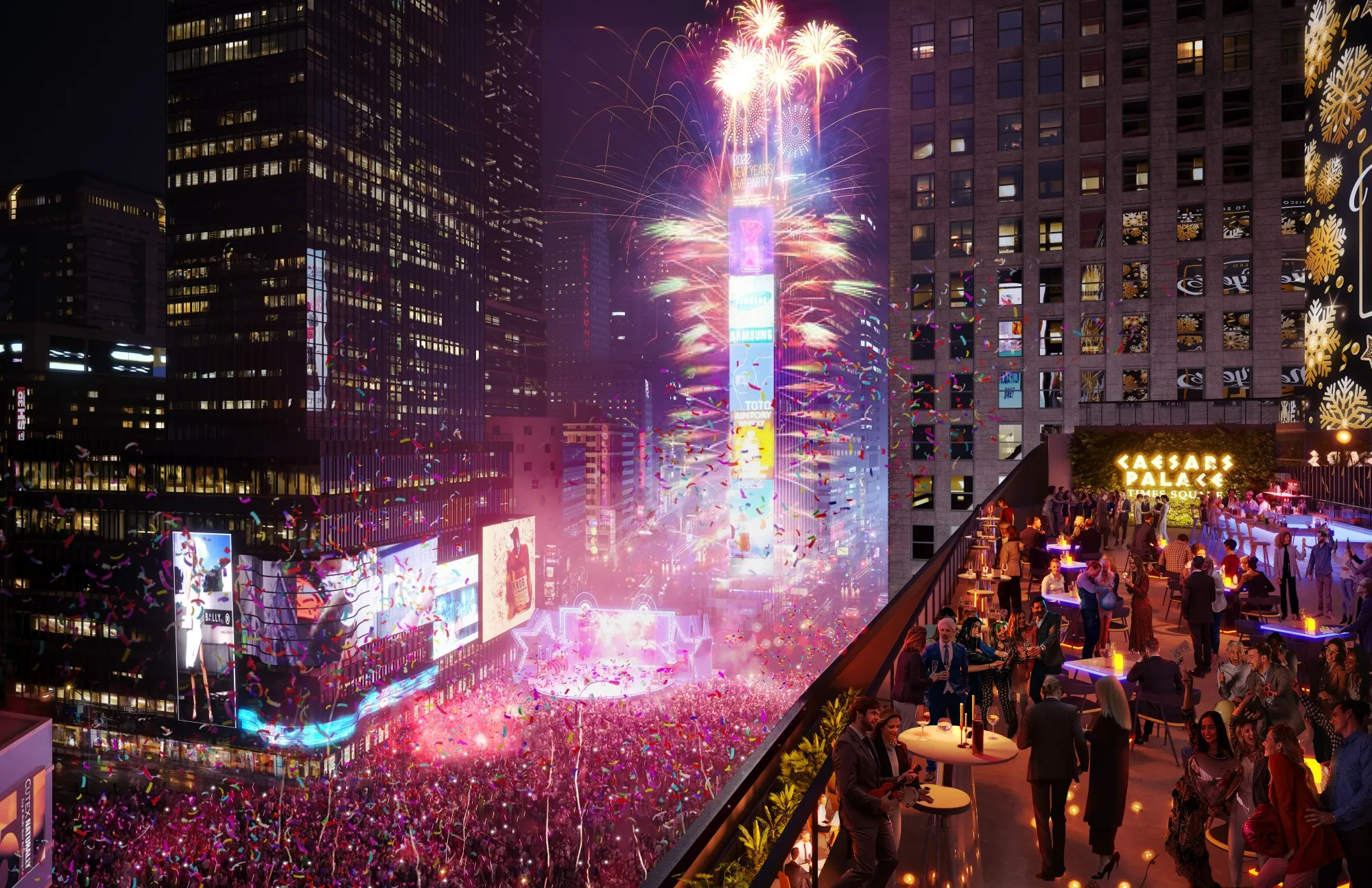 凱撒娛樂與SL Green的提案計劃將1515百老匯大樓改造為大型娛樂中心。效果圖:SL GreenSL Green與凱撒娛樂的提案擬將時代廣場一棟老舊辦公樓改造成擁有992間客房的酒店,其中包括部分精品諾布品牌客房,並配備15萬平方英尺(1.39萬平方米)賭場和四家餐廳。底層將設劇院。由於該地塊未規劃住宅用途,項目不包含住房。