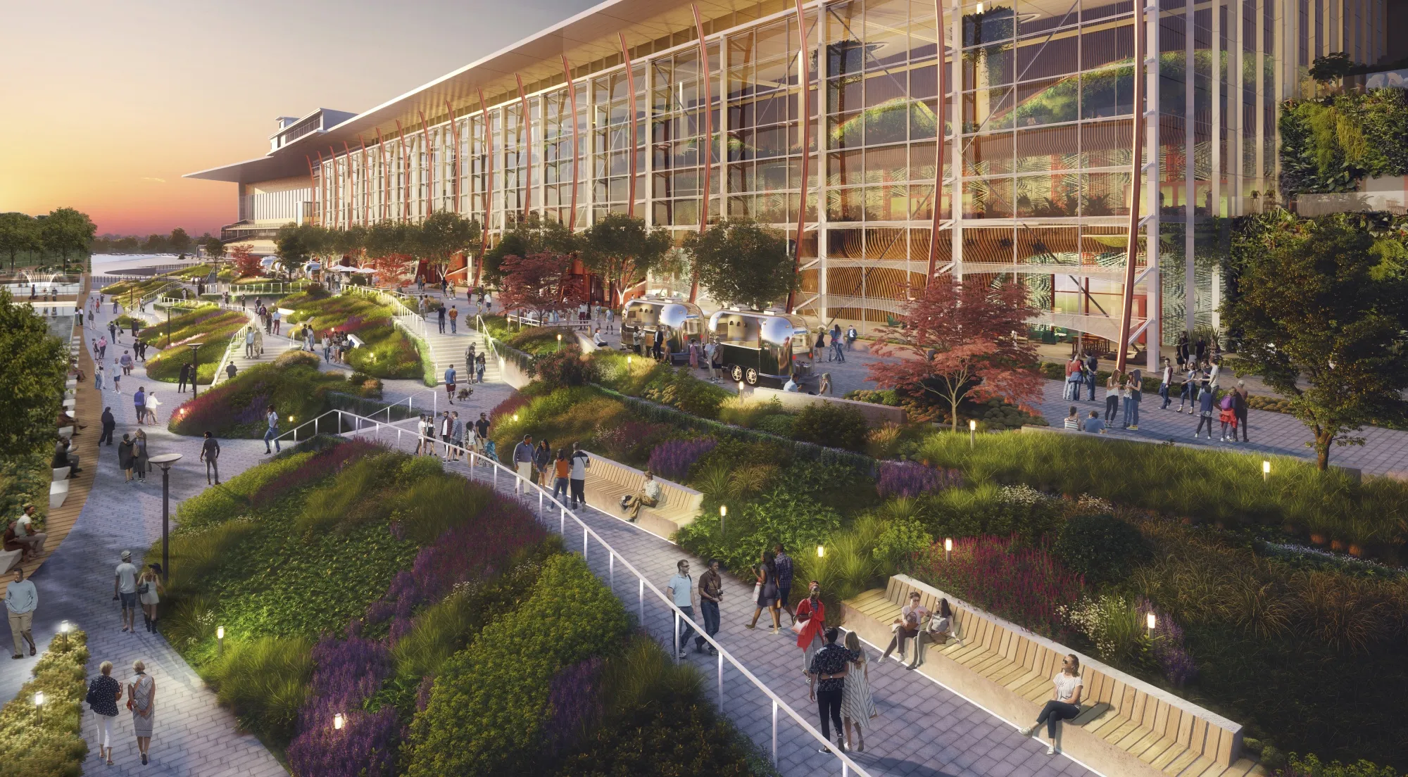 大都會公園背後的合作方正力推新建美食廣場及地鐵站升級計劃。效果圖:SHoP建築事務所,Field Operations目前僅有三家競標者在曼哈頓爭奪牌照,事實證明該地區獲取公眾支持確實困難重重。永利度假村有限公司放棄西區項目時曾發出嚴厲警告:任何運營商都將面臨"持續多年的反對”。包括百老匯劇院聯盟在內的團體已對其他計劃提出異議,當地議員也表示其社區對賭博場所持保留態度。