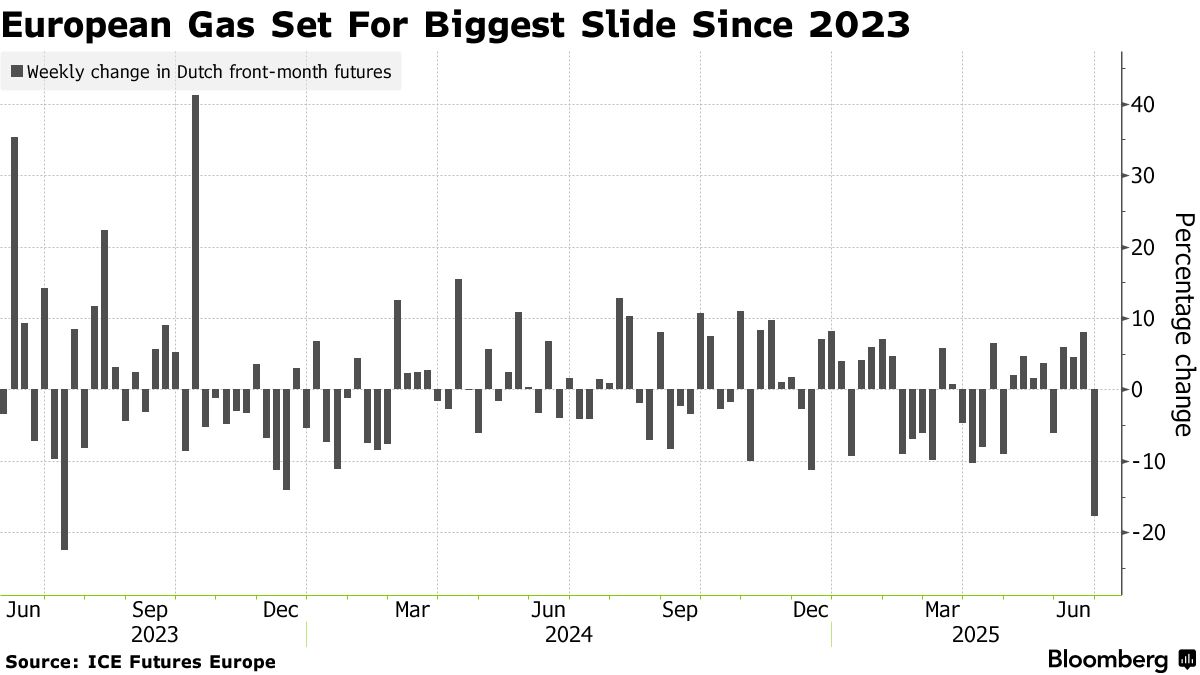 隨着中東緊張局勢引發的供應擔憂緩解,歐洲天然氣價格正邁向近兩年來最大單週跌幅。