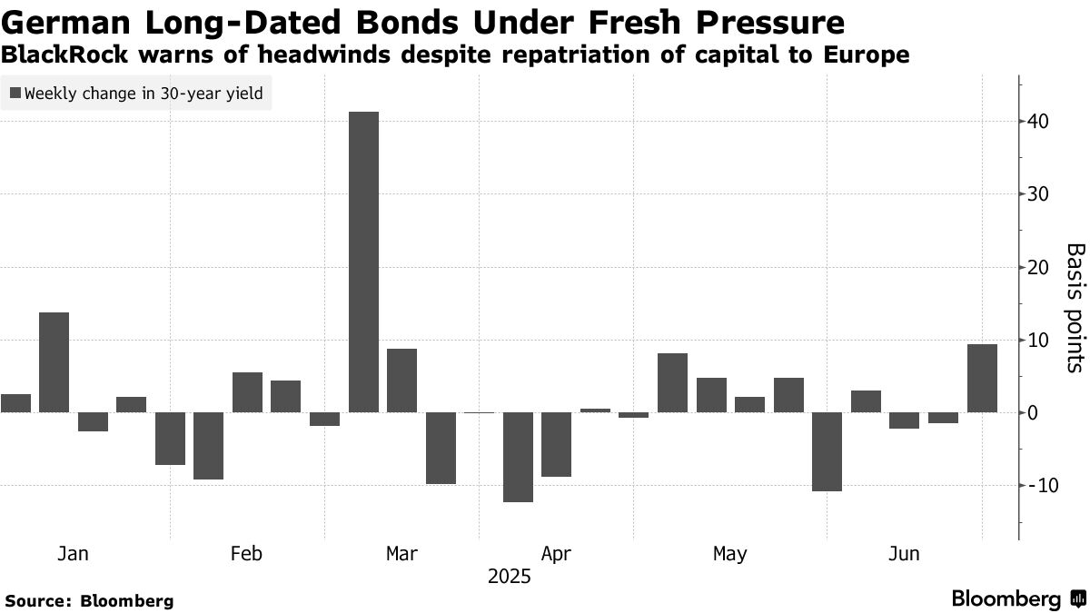 貝萊德集團全球投資與組合解決方案主管亞歷克斯·佈雷澤表示,儘管歐洲投資者可能將從美國撤回的資金投向本土,但德國雄心勃勃的財政擴張計劃使其國債顯得缺乏吸引力。