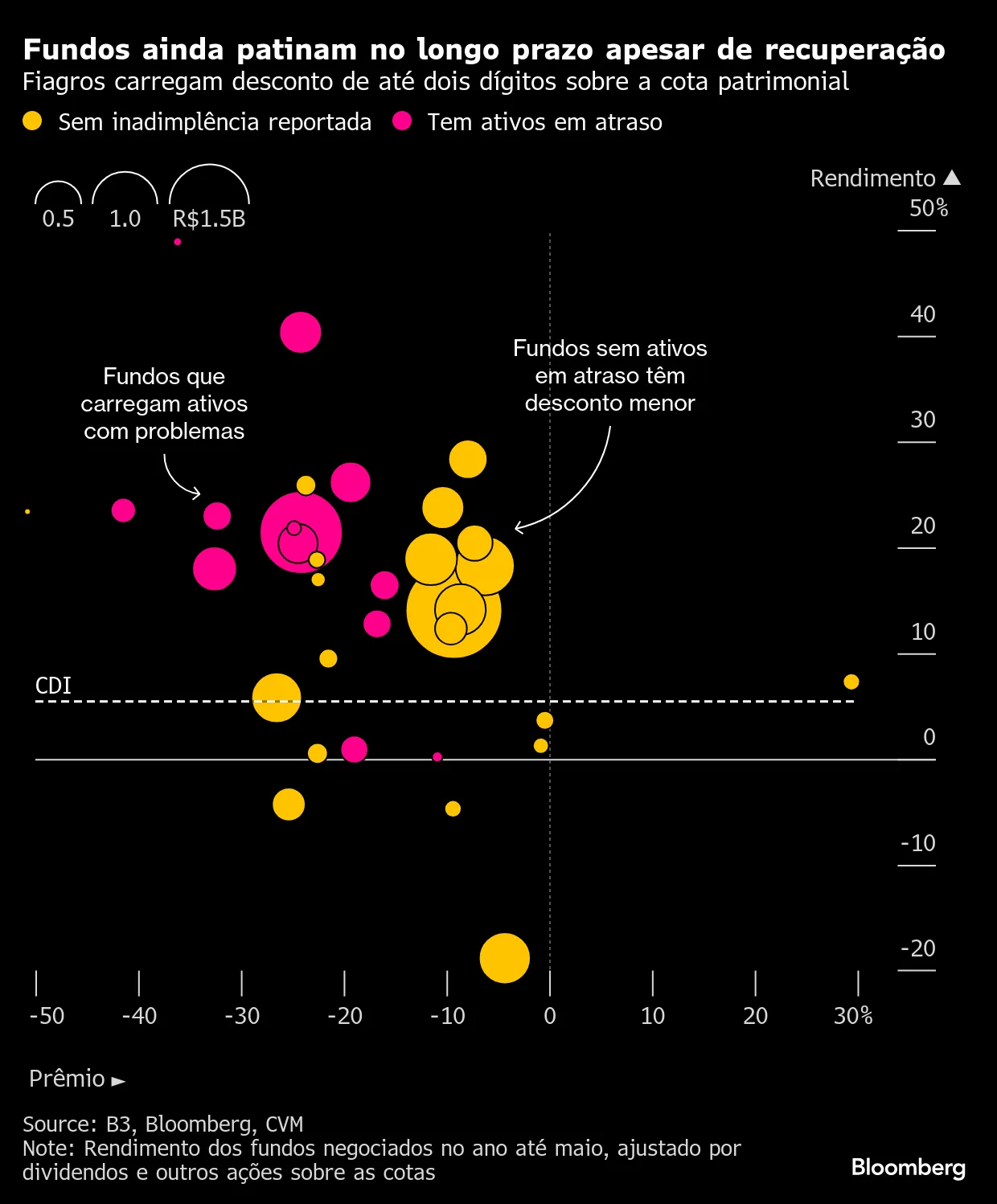 儘管如此,復甦仍很脆弱:部分份額仍以不足原價一半的價格交易,反映出投資者持續的謹慎態度。根據彭博彙編的數據,超過三分之一的上市Fiagros報告其投資組合中至少有一項資產出現逾期情況。