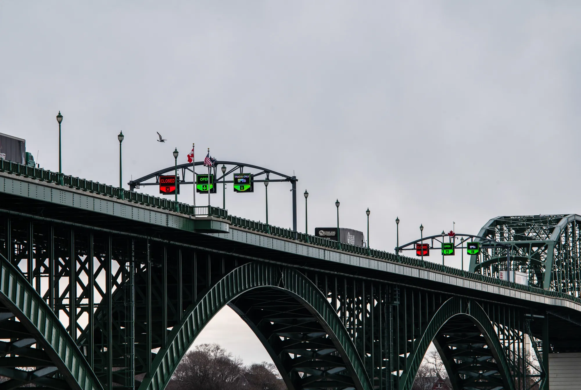 4月2日,卡車穿越位於安大略省伊利堡的加美邊境和平橋。