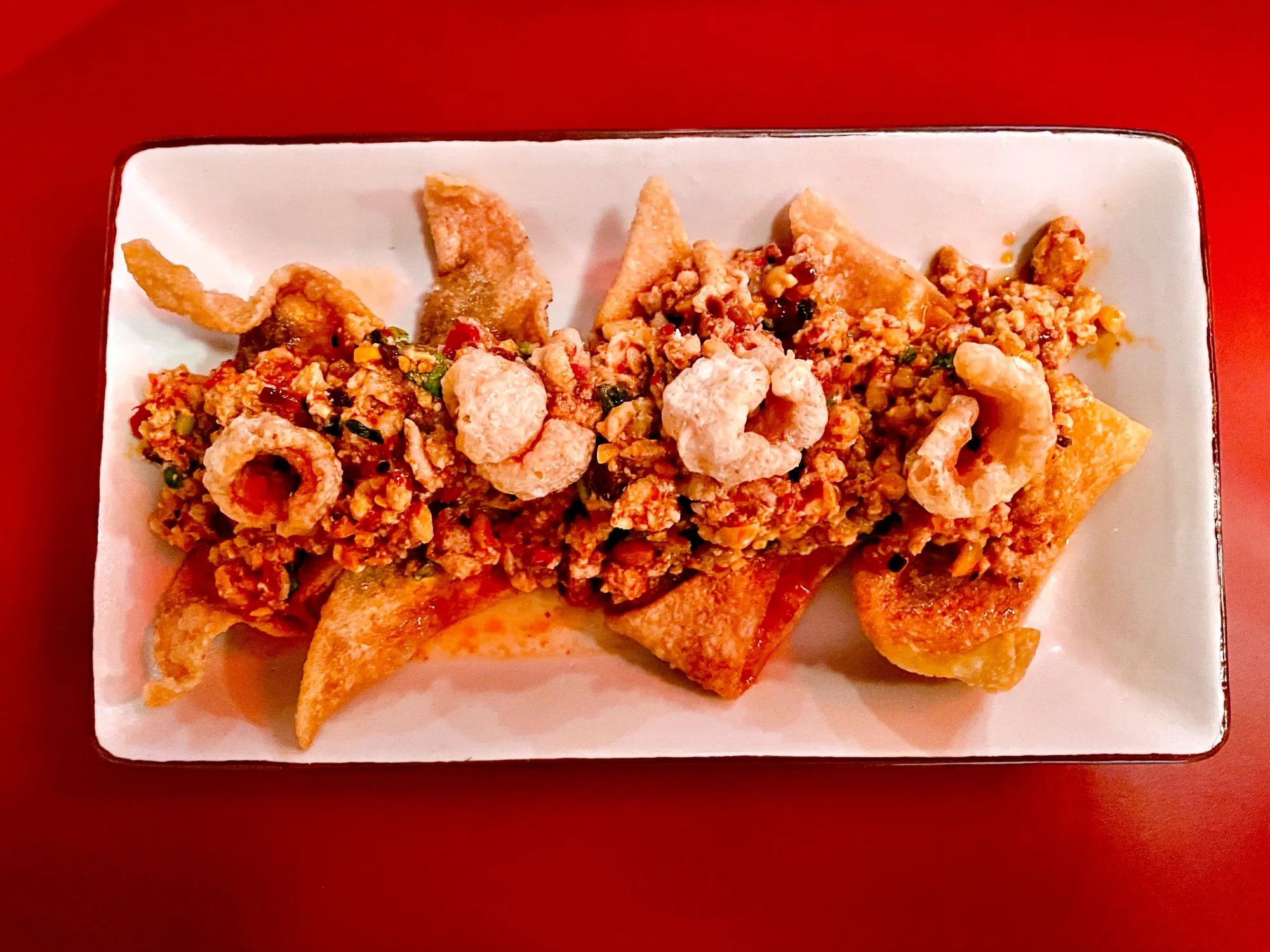 冬陰功雲吞攝影師:Filipe Pacheco/Bloomberg必點推薦: 冬陰功雲吞絕對值得回購,金黃酥脆的炸雲吞上鋪滿 crunchy配料。搭配香草和蝦乾醬的泰式水果沙拉也令人驚喜。