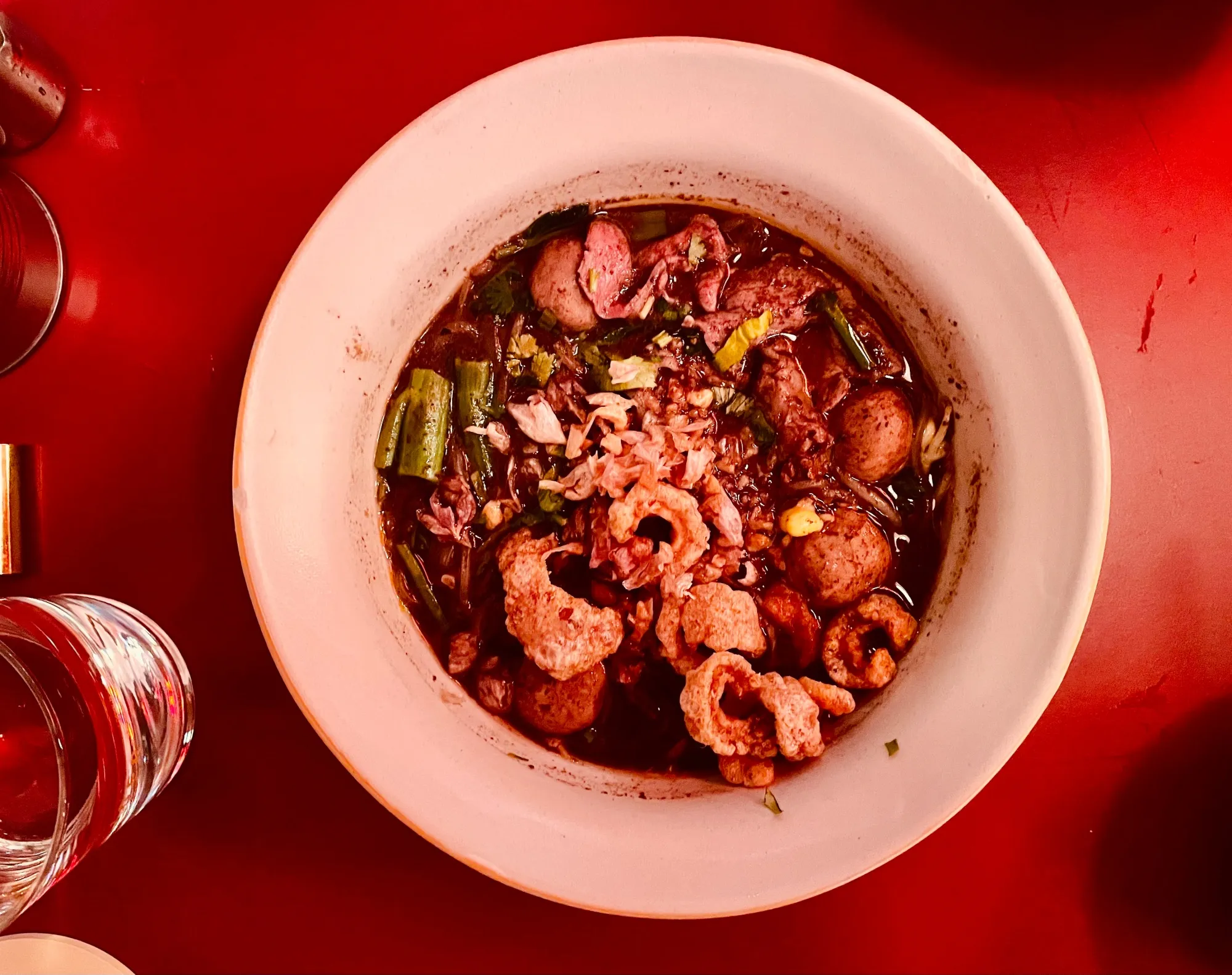 儘管服務員推薦冬陰功素可泰面是鎮店招牌,但當晚最驚豔的其實是和牛船面。麪條與雲吞佐以青辣椒醋汁堪稱絕配。