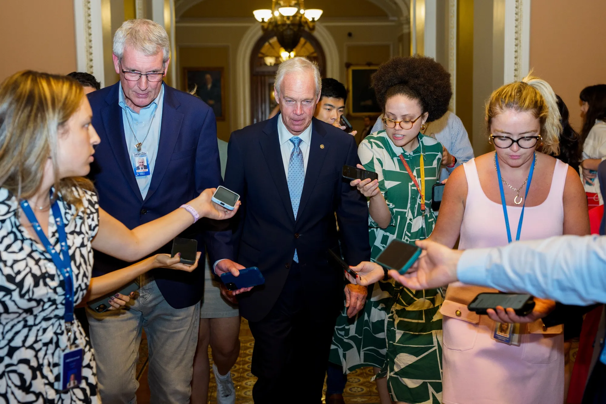 參議員羅恩·約翰遜週六在華盛頓美國國會大廈。攝影師:Aaron Schwartz/彭博社北卡羅來納州參議員湯姆·蒂利斯和肯塔基州參議員蘭德·保羅兩位共和黨人投下反對票。威斯康星州參議員羅恩·約翰遜在與萬斯和圖恩會晤後改變了立場。