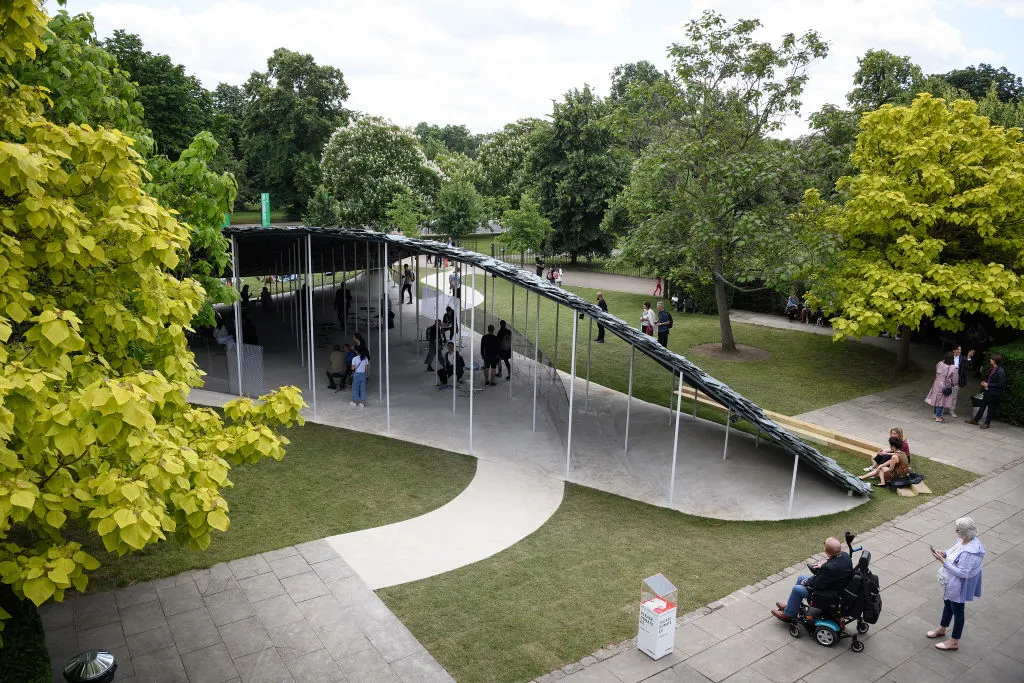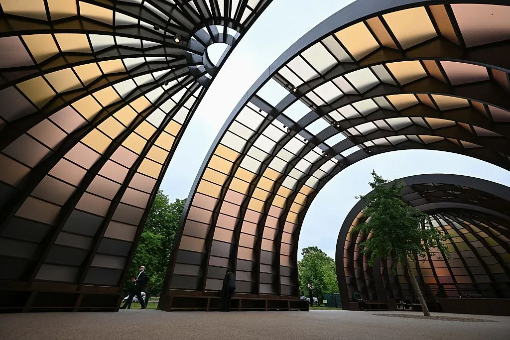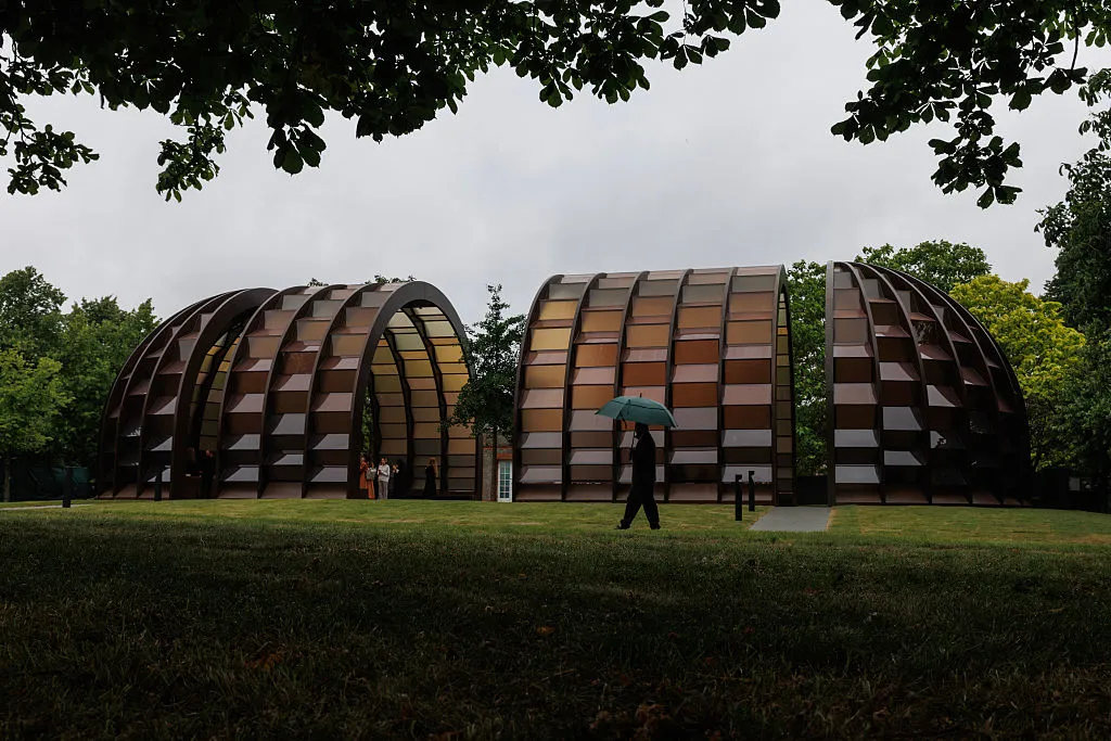 瑪麗娜·塔巴蘇姆及其事務所MTA設計的2025年蛇形展館。攝影師:丹·基特伍德/Getty Images Europe今年六月,英國建築界最富盛名的年度盛事迎來25週年。蛇形展館作為臨時性建築,自2000年起每年在倫敦蛇形畫廊草坪上拔地而起——通常伴隨着國際媒體的熱烈報道。每年都會邀請不同知名或新鋭建築師操刀設計。從丹尼爾·裏伯斯金、弗蘭克·蓋裏、扎哈·哈迪德、雷姆·庫哈斯到比亞克·英厄爾斯,這些吸睛的展館既是活動場地,也是建築界的談資,更為其所在的畫廊——這個在西倫敦肯辛頓花園舉辦小型優質臨時藝術展的機構——提供了宣傳平台。
