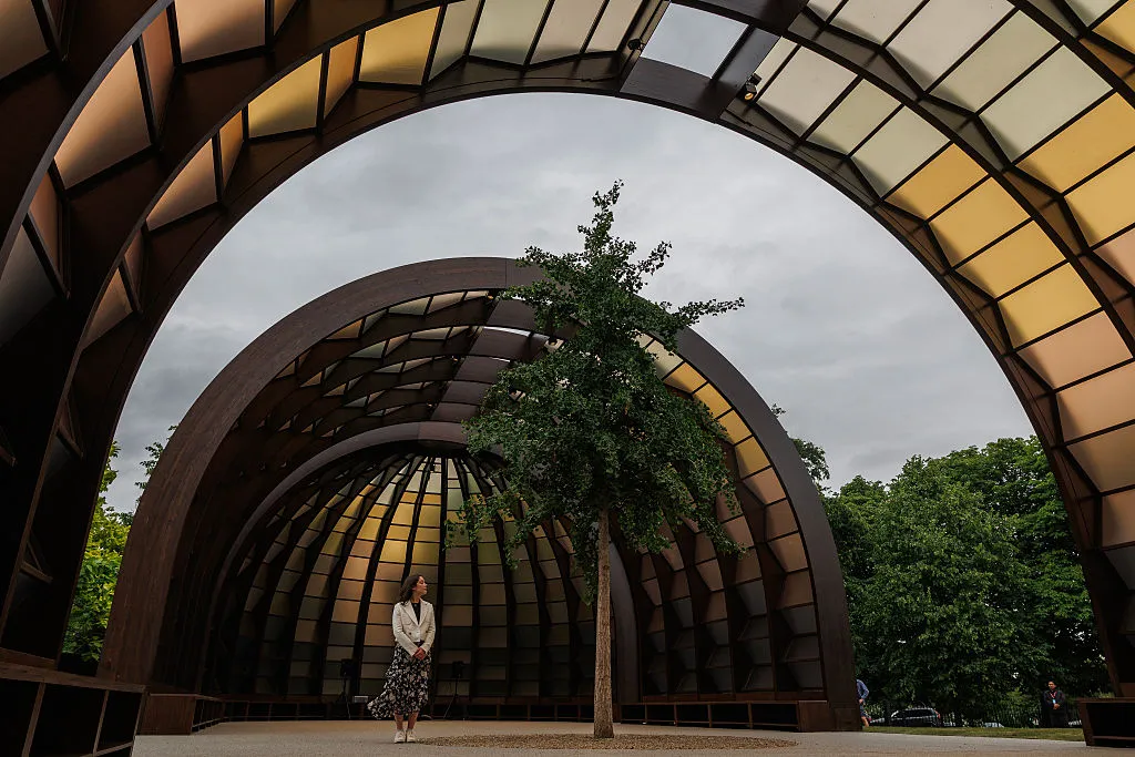 2019年蛇形畫廊展亭航拍圖,當年由日本建築師石上純也擔綱設計攝影師:Leon Neal/蓋蒂圖片社歐洲分社近年來該項目持續選擇國際曝光度不足的建築師——如今年入選的孟加拉國建築師瑪麗娜·塔貝蘇姆。