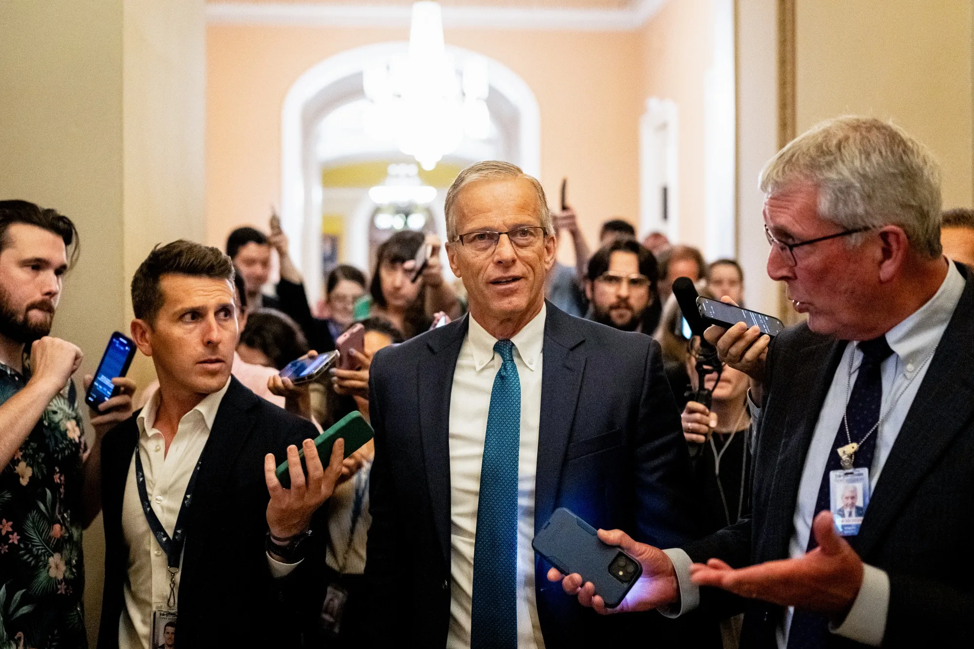 參議院多數黨領袖約翰·圖恩攝影師:格雷姆·斯隆/彭博社參議院多數黨領袖約翰·圖恩正加緊趕在特朗普總統設定的7月4日截止日期前推動其大規模税收和支出法案通過,但他首先需要解決約八名共和黨參議員的反對意見,這些議員對法案部分內容表示異議。