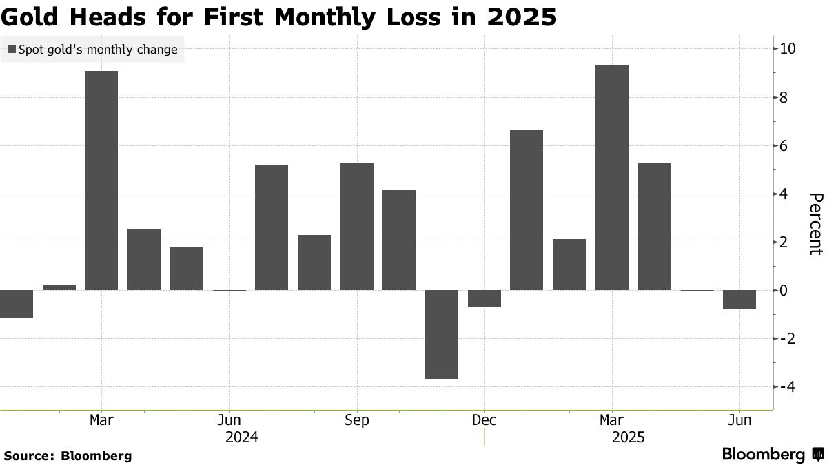 由於投資者面臨地緣政治和貿易緊張局勢加劇,避險需求支撐了黃金價格,今年迄今仍上漲約25%,交易價格較4月創下的歷史高點低約230美元。不過,隨着中東衝突擔憂緩解,以及美國經濟在消費者信心和通脹預期方面出現改善,黃金仍有望在2025年迎來首次月度下跌。