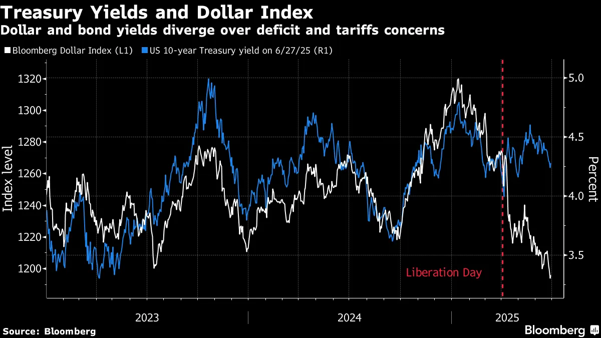 復甦勢頭不僅限於股市:截至6月的六個月內,歐元對美元匯率上漲13%。與此同時,美國關税政策的混亂實施令國債市場黯然失色。儘管德國政府準備發行更多債券,但自4月以來德國國債表現仍超越美債。波蘭、匈牙利等歐洲新興市場資產也呈現強勁反彈。