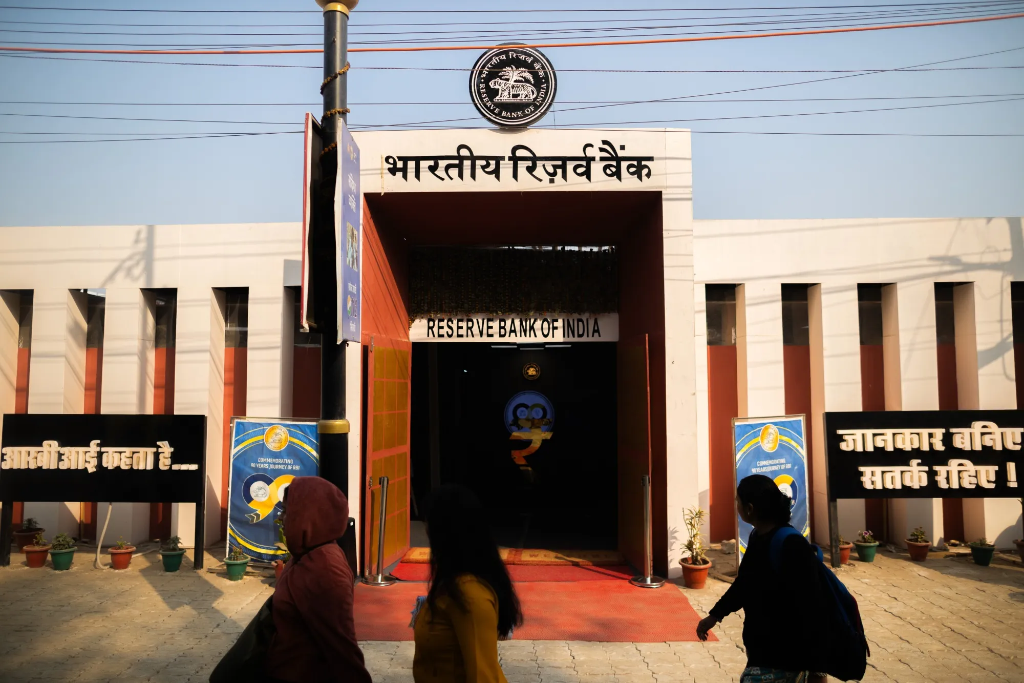 朝聖者走過北方邦阿拉哈巴德的印度儲備銀行。