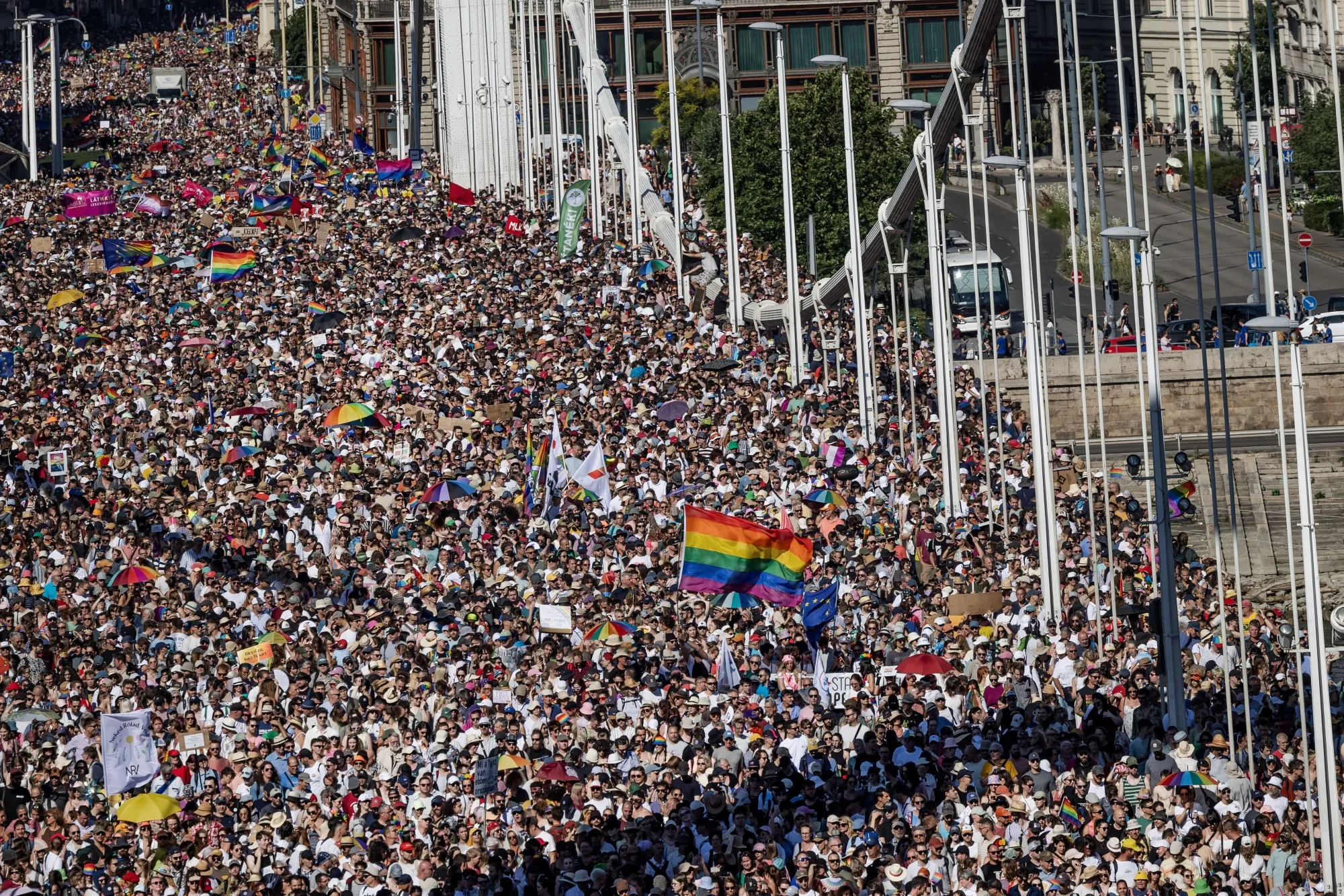 週六,抗議者在布達佩斯遊行,聲援LGBTQ羣體,無視政府以兒童權利為名對該活動的限制。組織者估計示威者達數十萬之眾,花費一個多小時才穿過該市的一座主要橋樑。