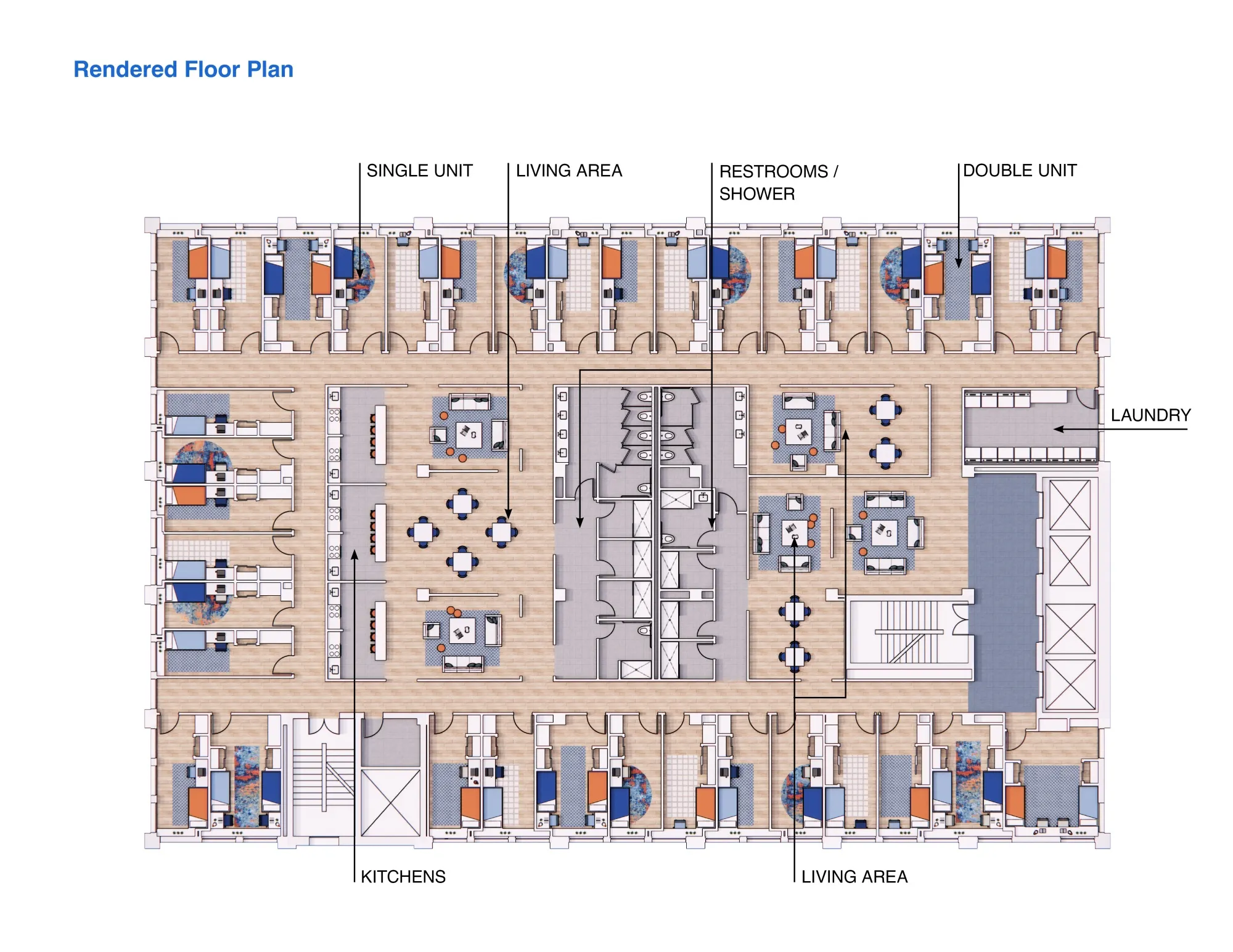 皮尤慈善信託基金與全球建築公司Gensler聯合開展的新研究探討了芝加哥等七座城市將辦公樓改造為共享居住空間的潛力。改造方案沿建築外圍佈置微型睡眠艙,核心區設置共享廚房、浴室和社交休息室——這種佈局會讓人想起大學宿舍走廊裏提着塑料浴籃去洗澡的場景。