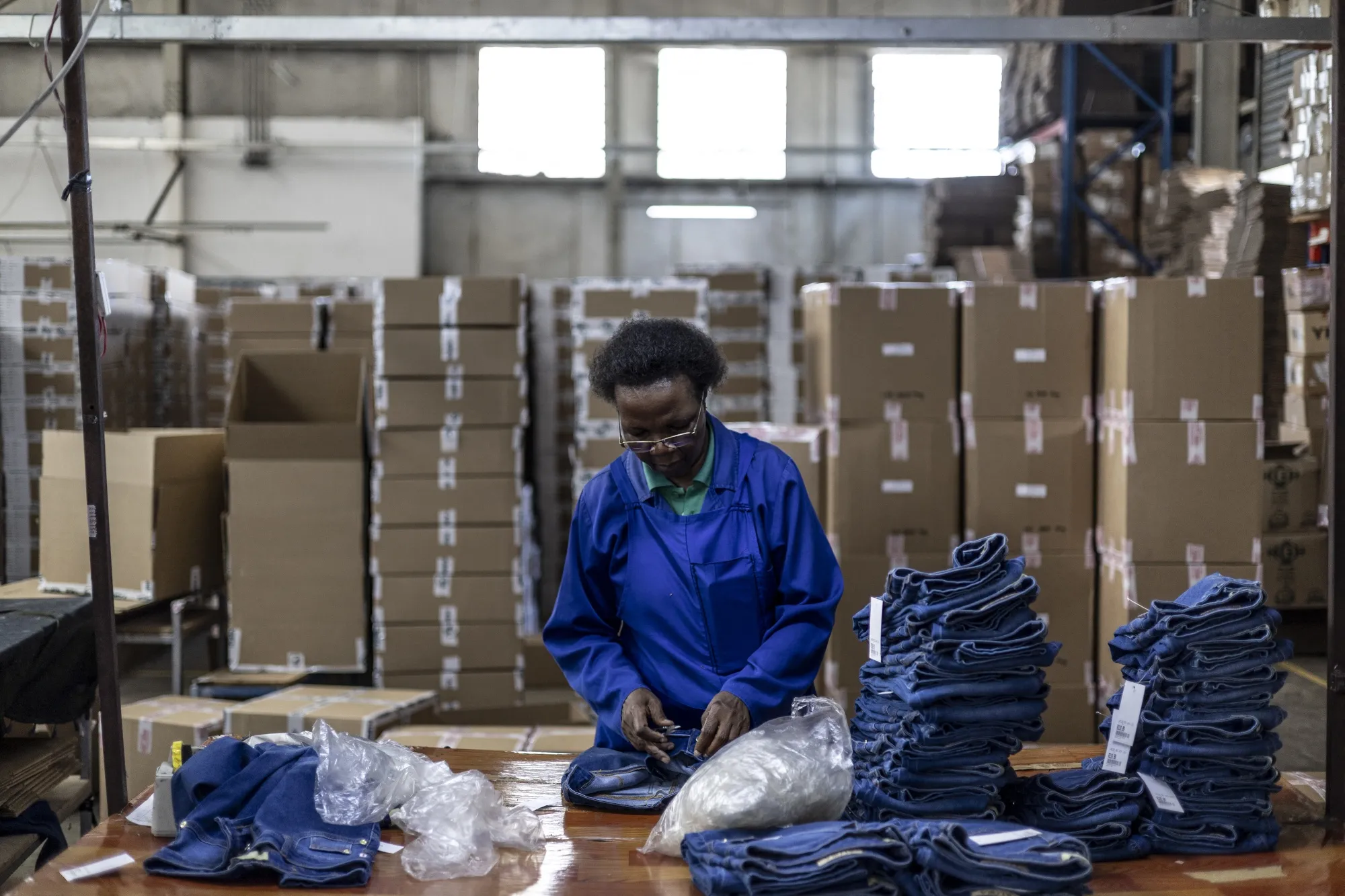 萊索托馬塞盧紡織廠內,一名工人正在摺疊製作完成的牛仔褲。攝影師:Roberta Ciuccio/AFP/Getty Images美國關税的暫時停徵並未給萊索托紡織業帶來喘息之機,由於美國訂單枯竭,該國已出現裁員潮與工廠倒閉現象。