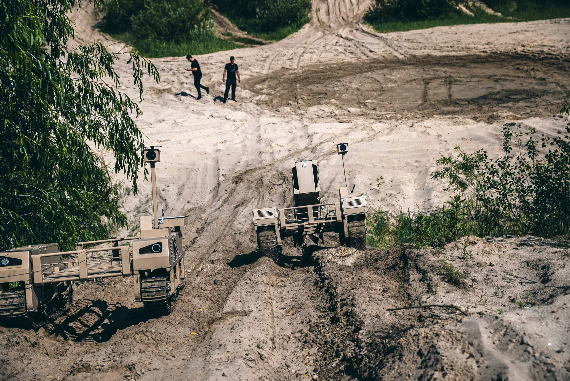 在基輔郊外第聶伯河沿岸的森林沙丘地帶,兩台形似機械螃蟹的矮壯無人車正沿坡道駛向沙灘。這些烏克蘭製造的機器人已投入前線使用,執行物資運輸、傷員後送、佈雷佈設鐵絲網等任務,甚至能搭載大口徑機槍進入戰鬥模式。這僅是烏方研發的眾多國防創新案例之一,當前與俄羅斯的衝突正在重新定義現代戰爭形態。