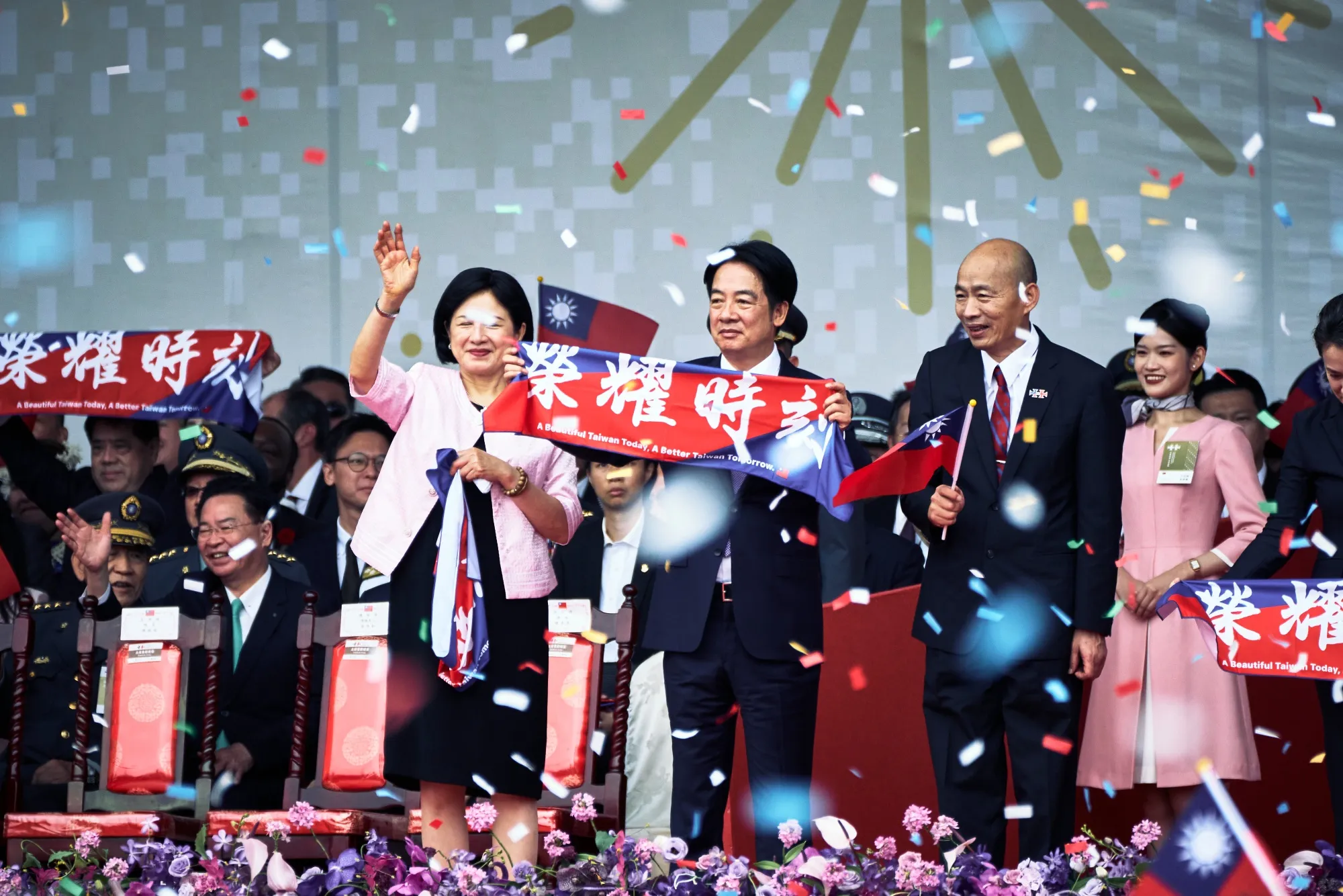 台灣地區領導人賴清德(中)出席2024年10月10日台北"雙十節"慶典。