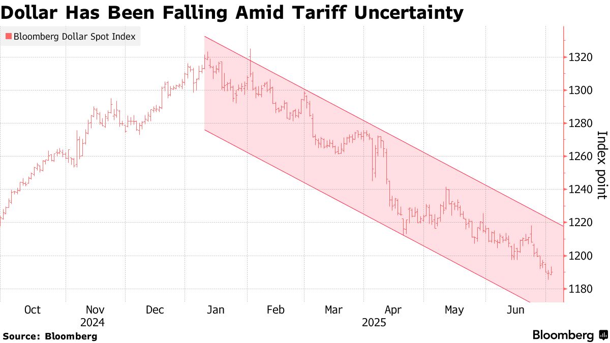 由於市場加大押注美元未來表現疲軟,2025年美元指數已下跌超9%。週三該指數觸及日內高點,在連續兩日下跌後反彈,因唐納德·特朗普總統3.3萬億美元的減税和支出法案在參議院獲得通過。但隨後回吐漲幅。