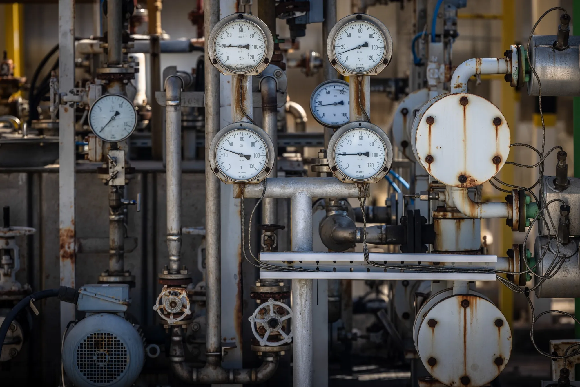 巴塞羅那港Enagas SA天然氣儲存與配送設施管道上的壓力錶。