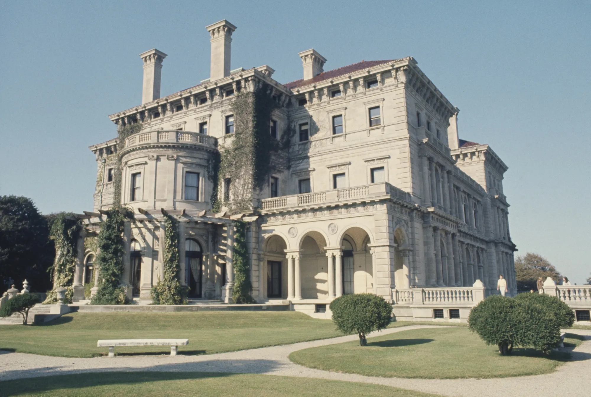 1960年,範德比爾特家族避暑別墅"聽濤莊園"坐落於羅德島紐波特。攝影師:Archive Photos/Getty Images惠靈頓指出,當鍍金時代建築風格被酒店業採用後,諸如範德比爾特家族的海德公園避暑別墅海德公園或為上東區傢俱大亨亨利·T·斯隆建造的豪宅,逐漸成為"奢華的普世象徵"。蒸汽時代的宮殿式酒店如紐約原華爾道夫酒店或倫敦薩伏伊酒店,在大西洋兩岸同時受到新貴與老牌精英的青睞。