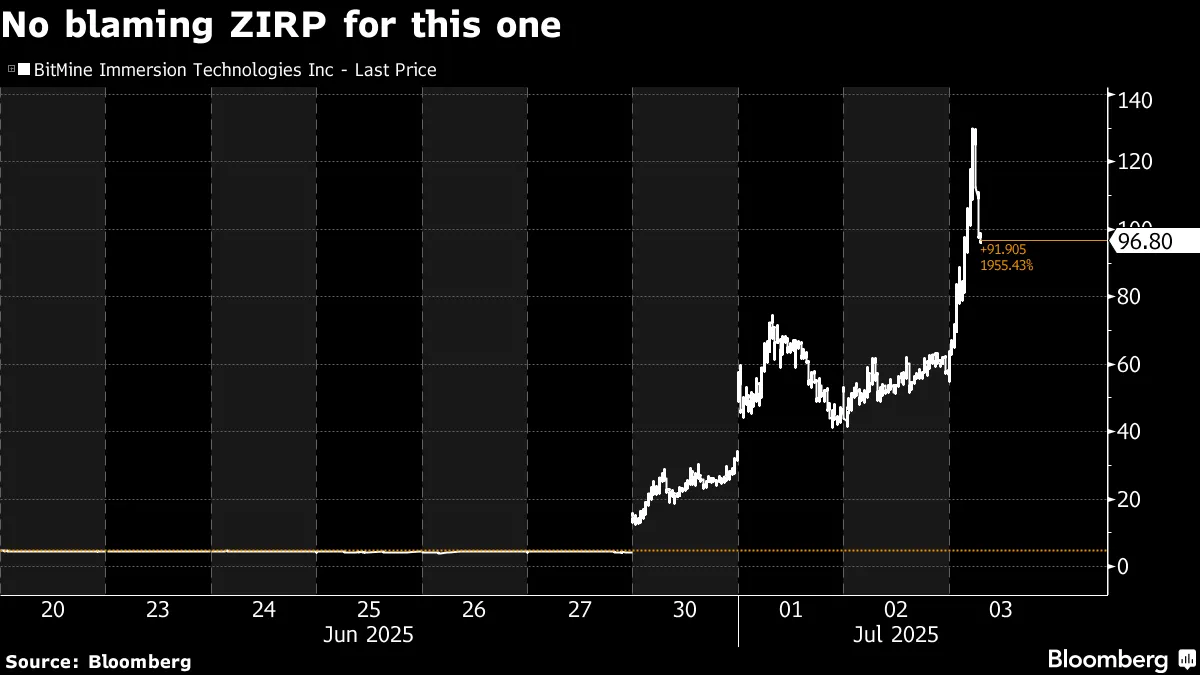 週六我們將發佈活動中的另一期節目,嘉賓是《FeedMe》簡報的艾米麗·桑德伯格,主題基本圍繞Z世代如何看待資本主義、金錢、投資和消費。她的核心觀點是:即便是成功的年輕專業人士也籠罩在末日將至的預感中,認為沒有人會來拯救他們,所以最好趁現在"抓緊錢袋”,在一切分崩離析前致富(或許因為AI會搶走所有工作)。我就不劇透太多了,先給大家看一張BitMine Immersion Technologies的股價圖——就在我打字時,它今天又暴漲了。