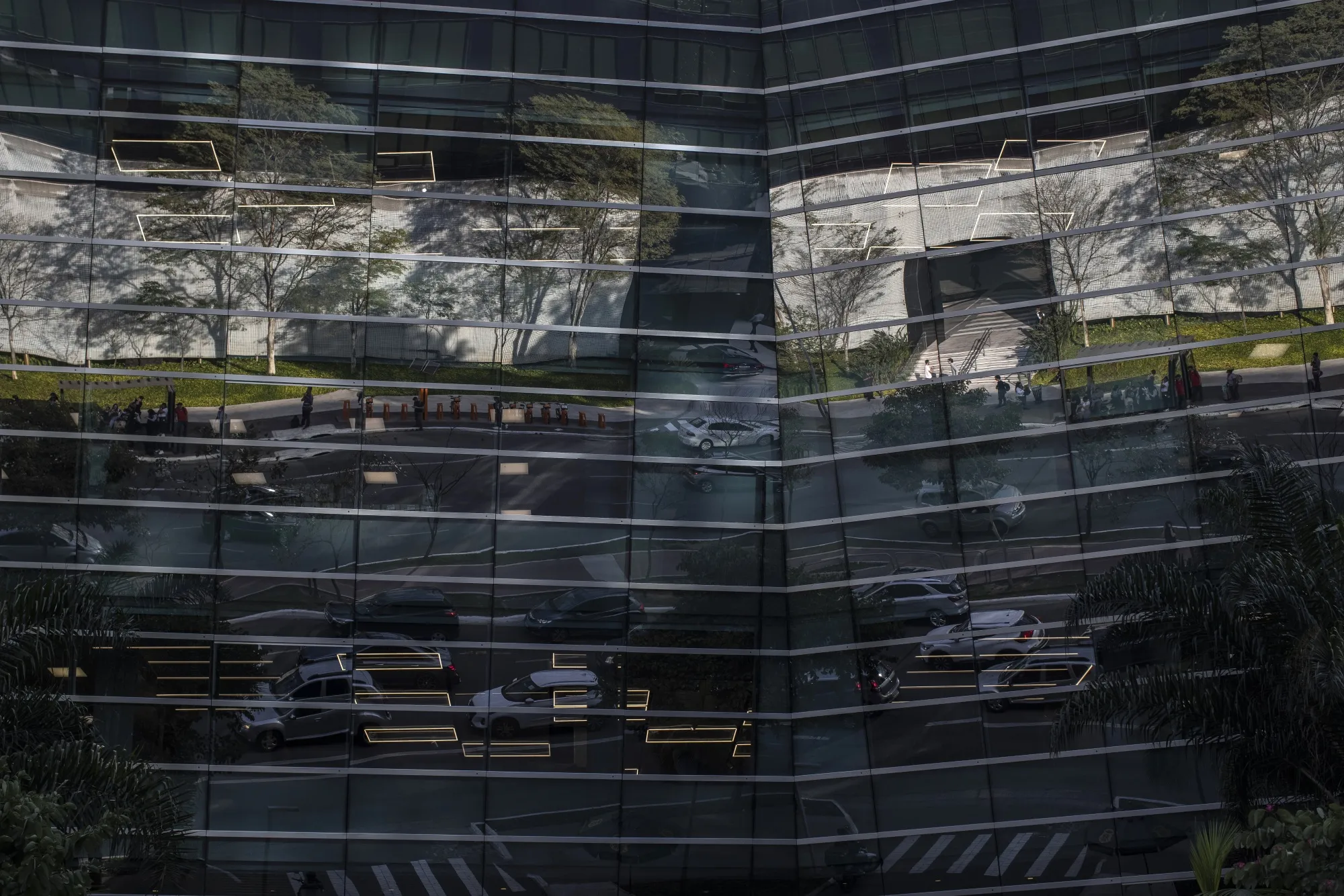 聖保羅金融中心法利亞利馬大街上建築反射的交通景象