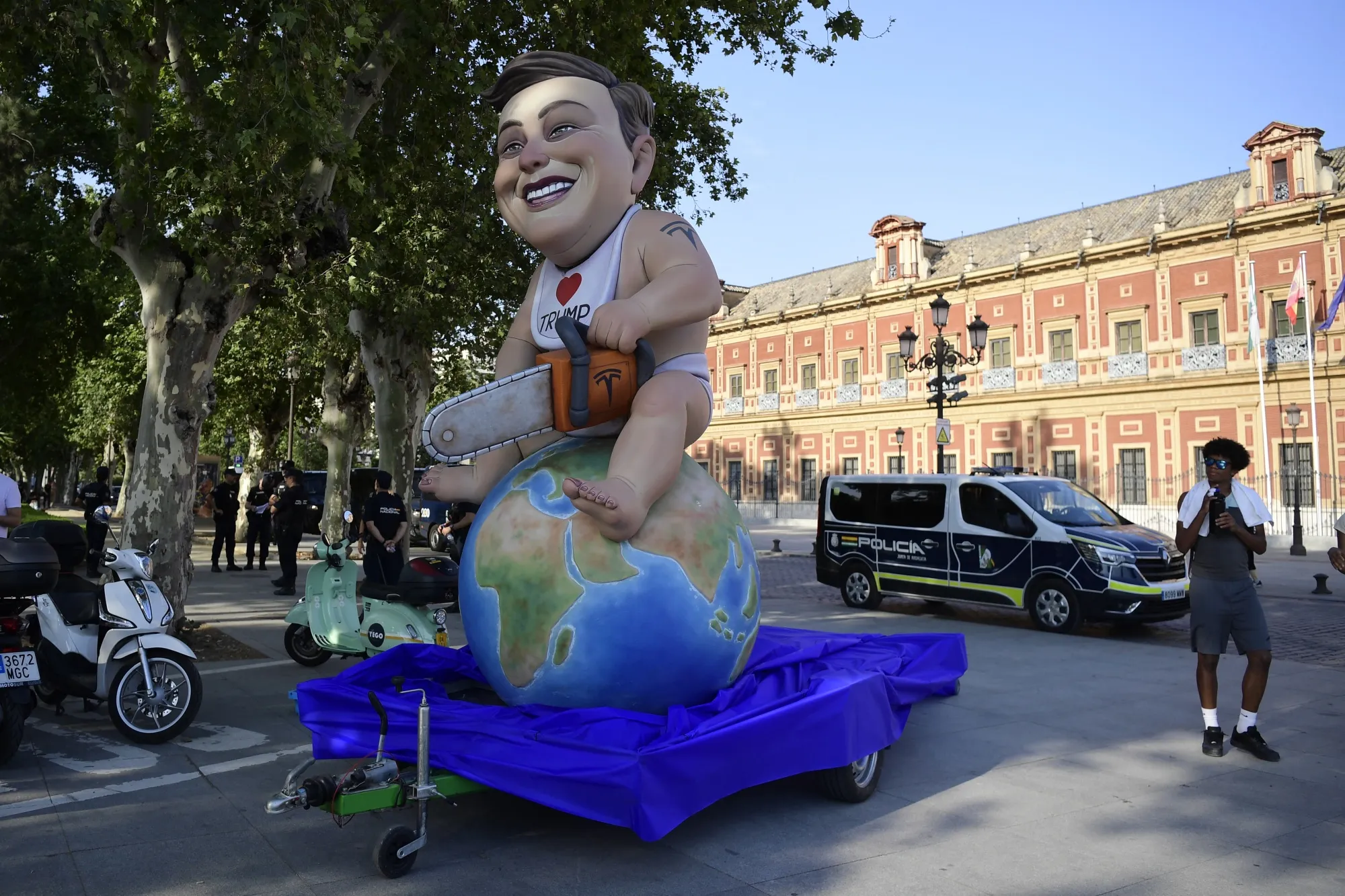 描繪美國億萬富翁埃隆·馬斯克的大型木偶。