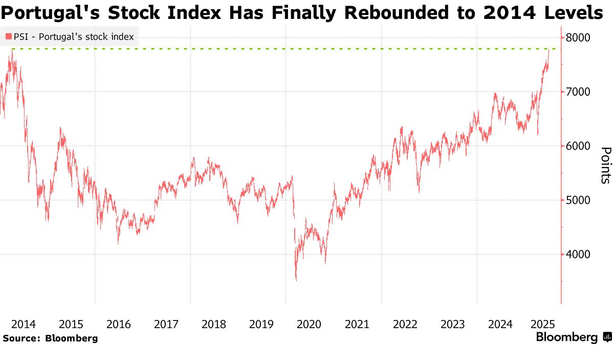 葡萄牙股市創下14年新高,終於從該國現代史上最大銀行倒閉案引發的虧損中恢復過來。