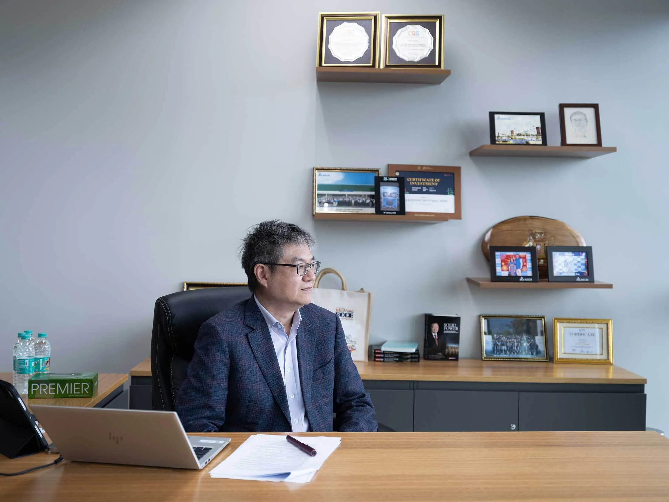 台達電子印度公司總裁林正在監督印度南部一個新生產中心的開發。攝影師:Gayatri Ganju,供《彭博商業週刊》使用林表示,台達在印度北部已有兩家制造廠,但在泰米爾納德邦提供包括10年所得税豁免在內的一系列激勵措施後,公司選擇將最新工廠設在該邦。2022年出任台達印度業務總裁的林指出,該邦還迅速接通了水電供應,其完善的基礎設施——包括鋪設良好的高速公路和便捷的東海岸金奈港通道——更是錦上添花。“他們正在幫我們解決許多問題,“他説。