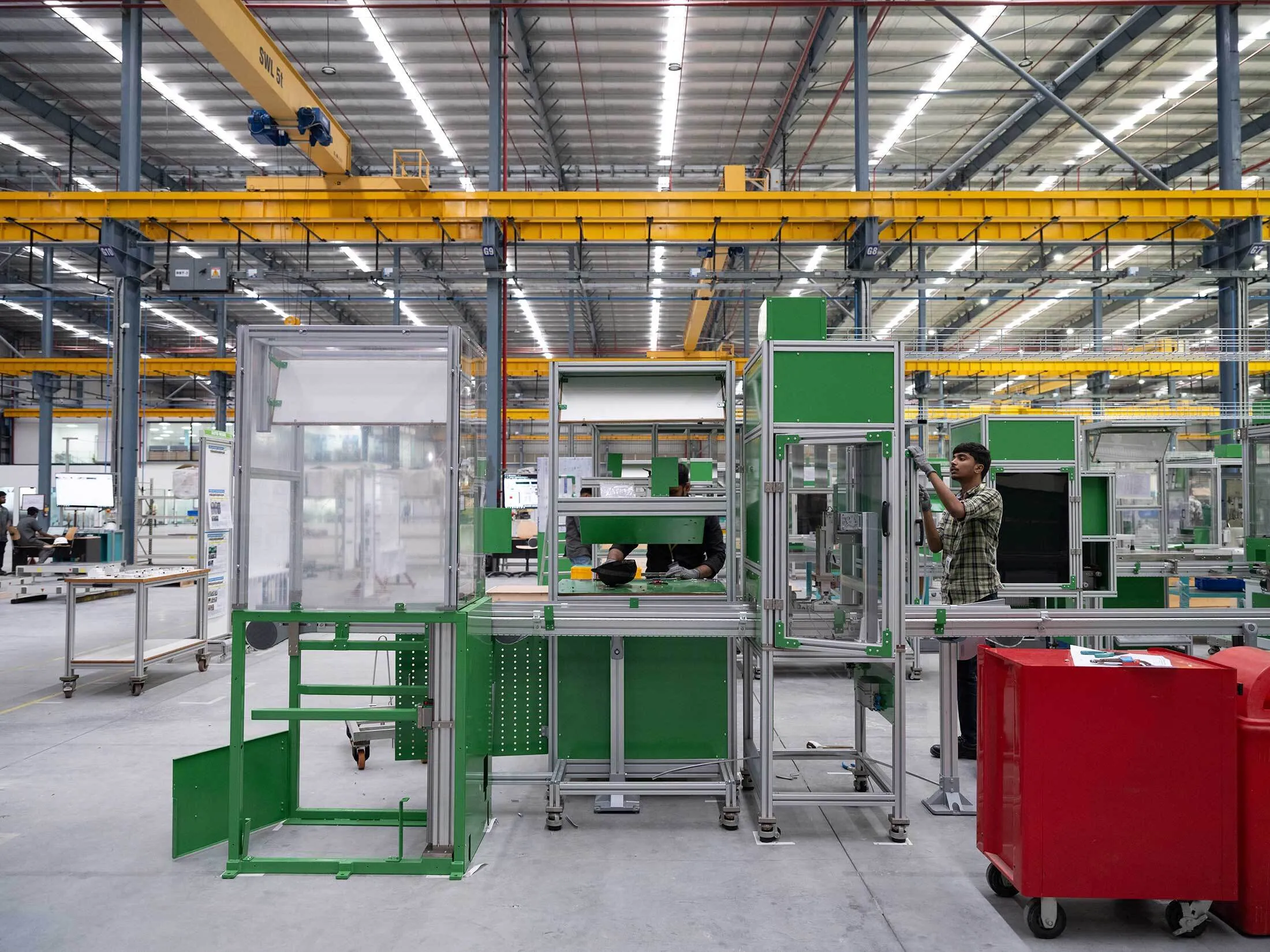 TEAL在霍蘇爾的工廠。該公司為電子產品、醫療設備、電動汽車和智能手機制造商組裝機械。攝影師:Gayatri Ganju 為《彭博商業週刊》拍攝對於整個印度而言,發展強大的製造業一直是長期目標——這也是許多領導人未能實現的。在脱離英國統治後的最初幾年,總理賈瓦哈拉爾·尼赫魯優先考慮建設一個自給自足的國家,生產其所消費的產品。結果是一個以劣質商品聞名的封閉經濟。20世紀90年代的改革帶來了税收和關税的降低,吸引了外國投資並刺激了經濟增長,但經濟仍然嚴重偏向服務業,如信息技術和金融服務。
