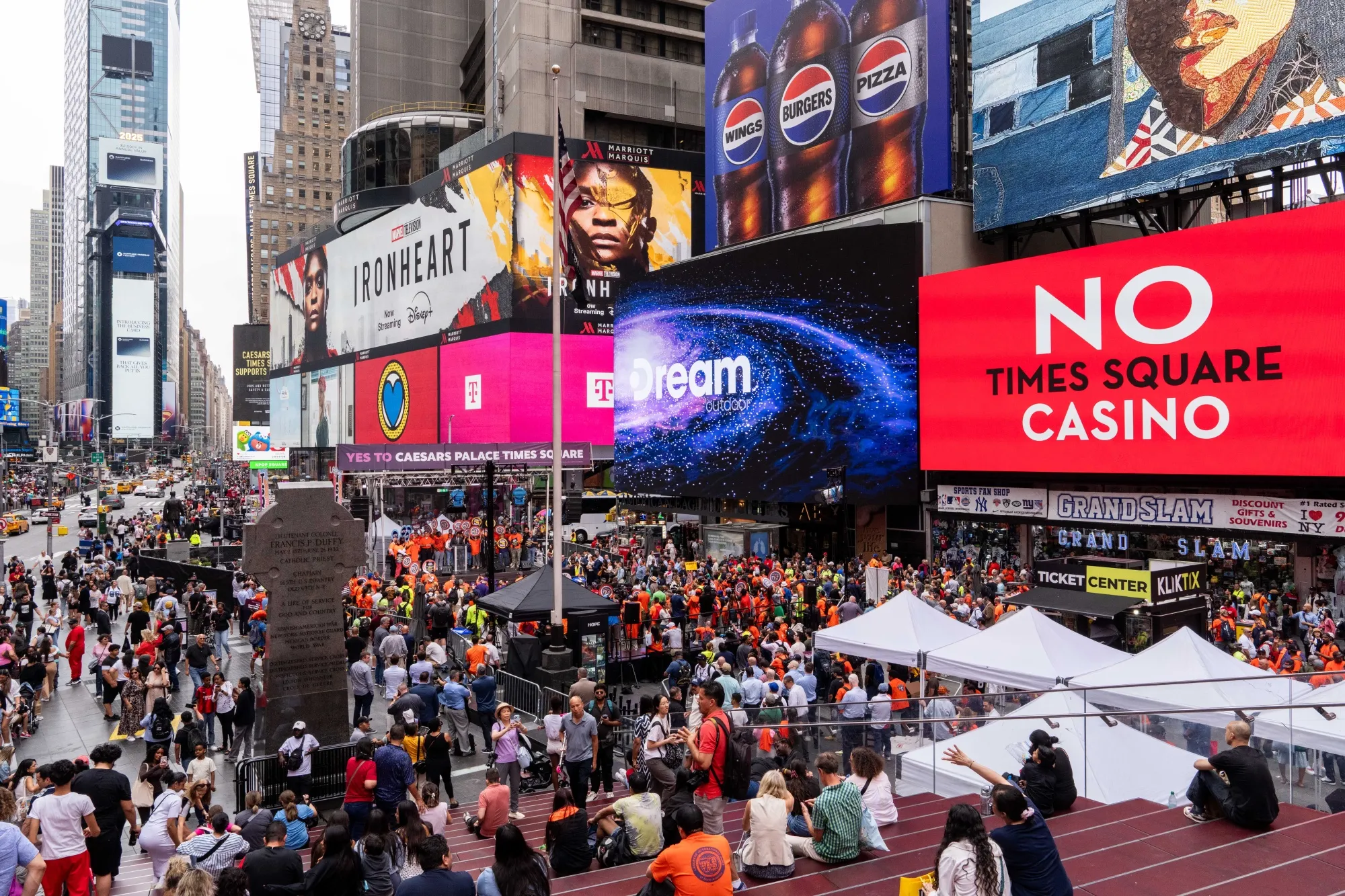 凱撒娛樂公司提議在時代廣場建造一座賭場,據稱僅10年內就能產生233億美元的博彩收入。該項目發言人稱之為為城市創造"歷史性税收"的機遇。“我們預見整個時代廣場將成為度假區,當地餐館、酒店和百老匯劇院都將直接受益,“發言人表示。