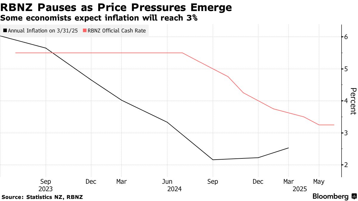 儘管國內需求疲軟,但通脹已經回升,經濟學家預計今年晚些時候將測試新西蘭央行1-3%目標區間的上限。政策制定者表示,暫停行動將使他們能夠評估國內經濟的疲軟是否持續,以及在8月下次會議之前通脹和通脹預期如何演變。