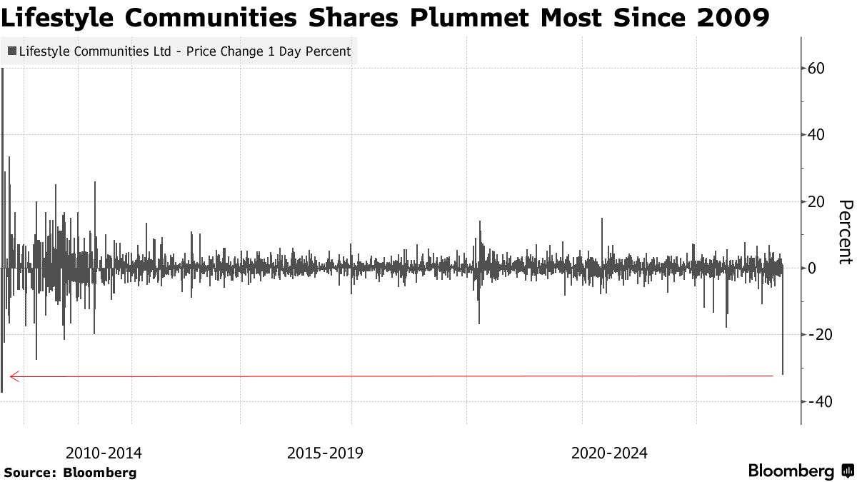 生活方式社區有限公司股價創下16年來最大跌幅,此前澳大利亞一州級法庭裁定應廢除該養老村運營商的部分退出費協議。