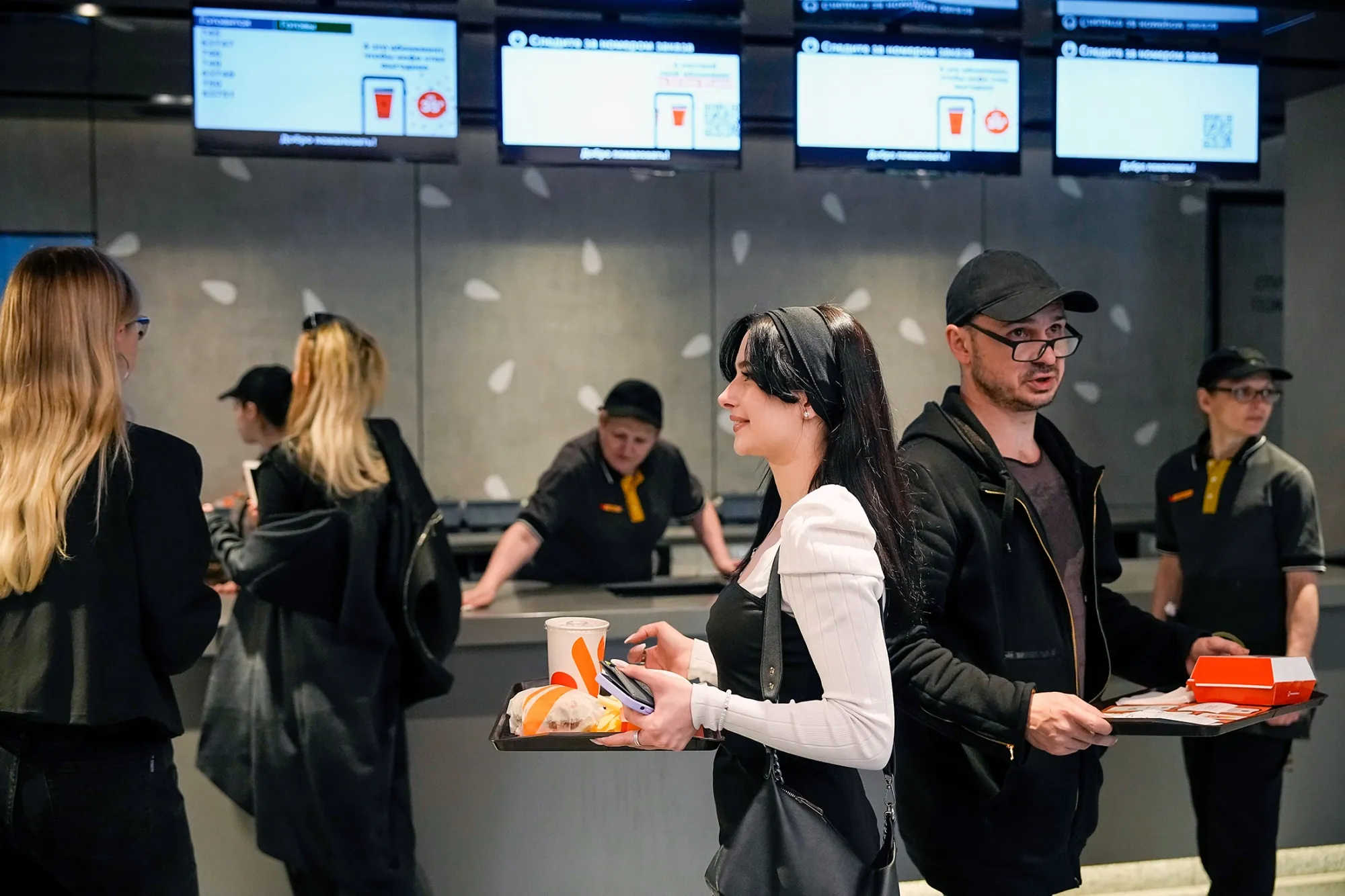 2023年莫斯科一家"就是這麼好吃"餐廳。攝影師:Alexander Zemlianichenko/美聯社兩片牛肉餅配芝麻麪包、生菜和奶酪的形象看起來異常眼熟,薯條盒上風格化的金色M標誌也是如此。但這不是麥當勞, 這是"就是這麼好吃"的門店。