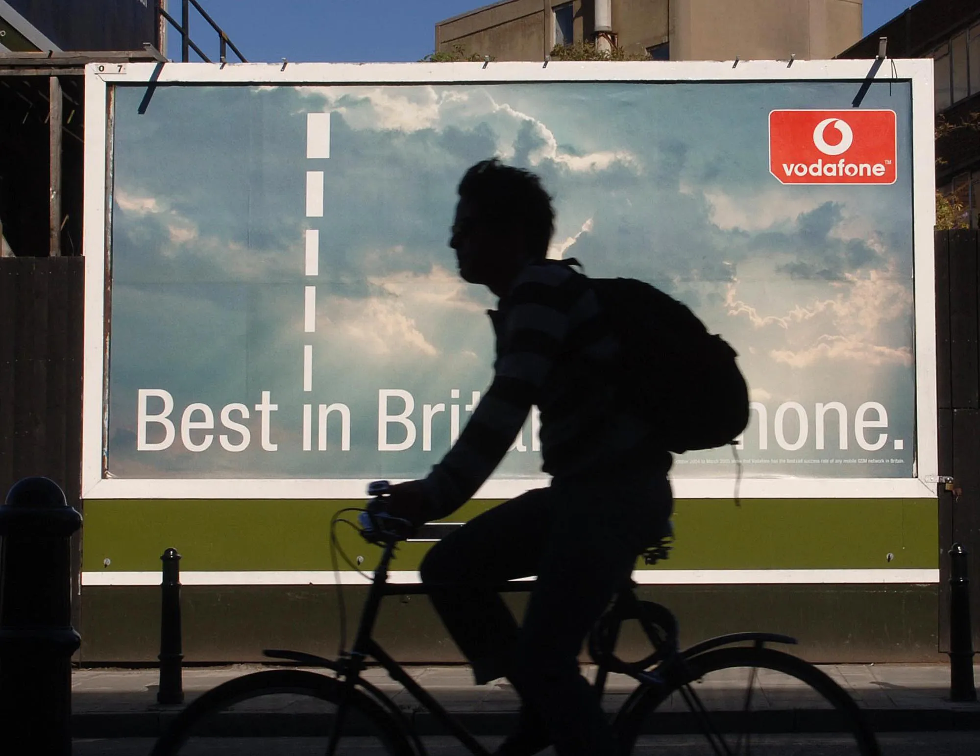 一名騎行者經過倫敦街頭由WPP集團旗下智威湯遜製作的沃達豐廣告牌。