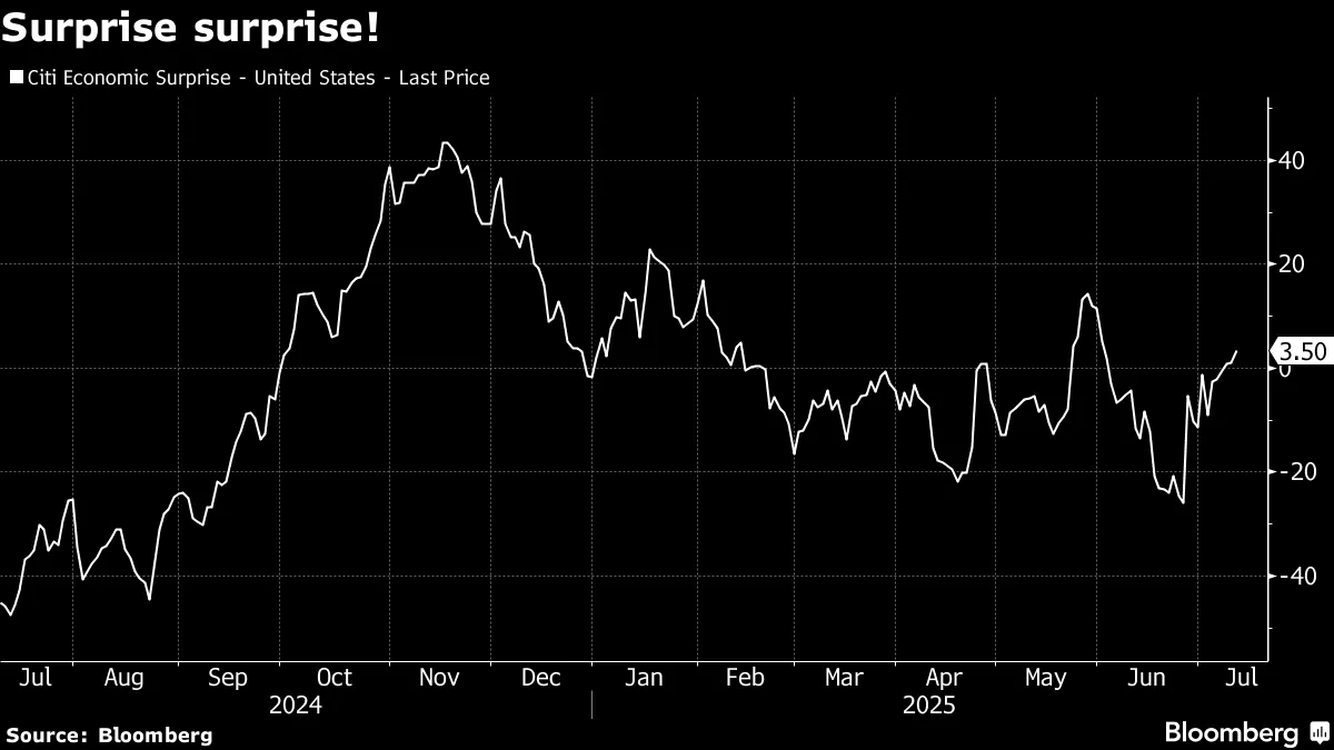 一個月前的主要論調是經濟正在減速,但由於最終關税水平的不確定性,美聯儲可能暫緩降息。但根據零星數據,至少目前看來,部分原因可能是經濟順風。