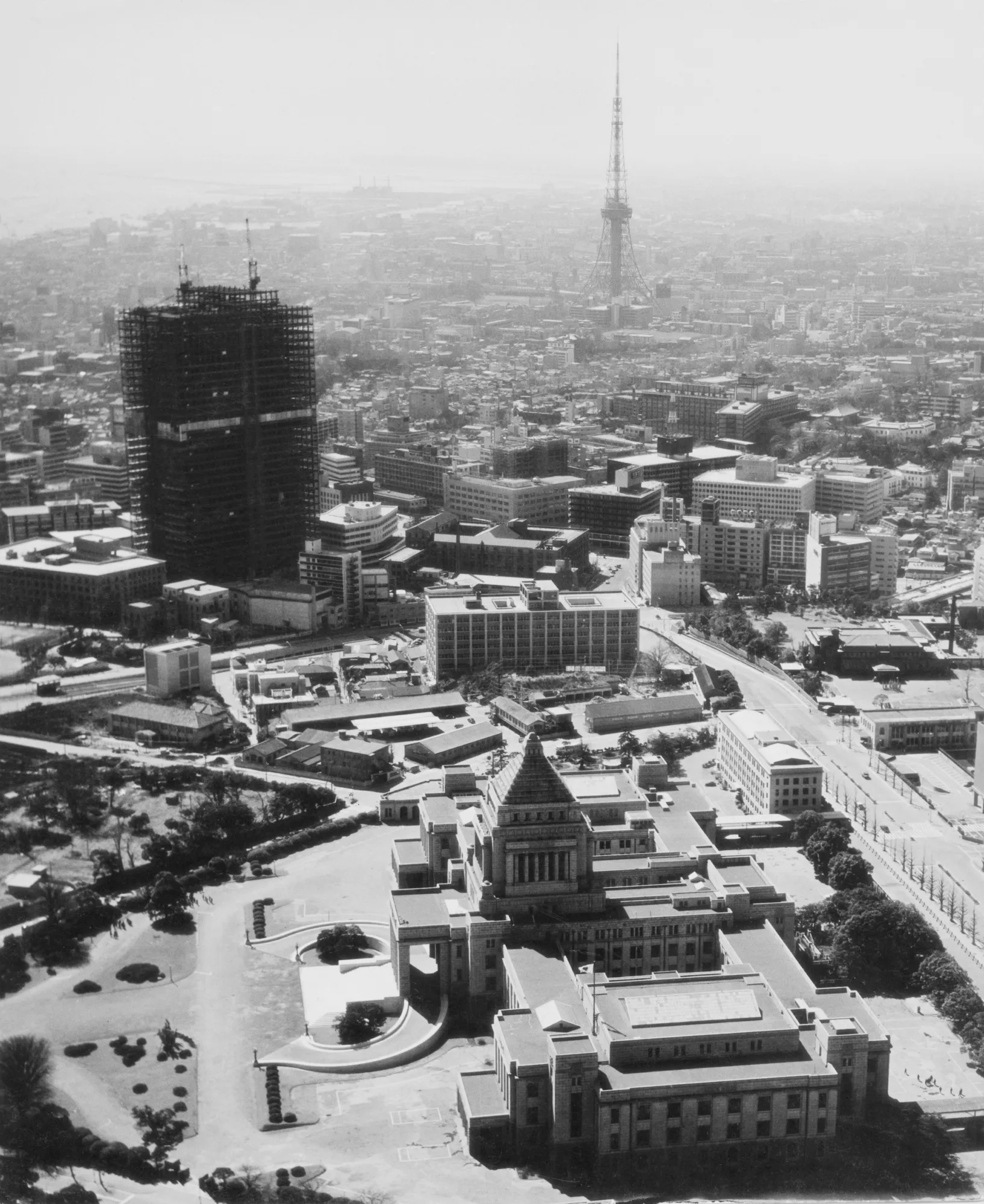 但人們很容易忘記,這座首都的垂直髮展不過是近幾十年的事。1964年9月東京奧運會前夕,美國的天際線早已被帝國大廈和克萊斯勒大廈等數十年曆史的地標建築主宰,而東京當時最高的建築是九層高的國會議事堂——這座耗時55年設計、於1936年落成的建築1。