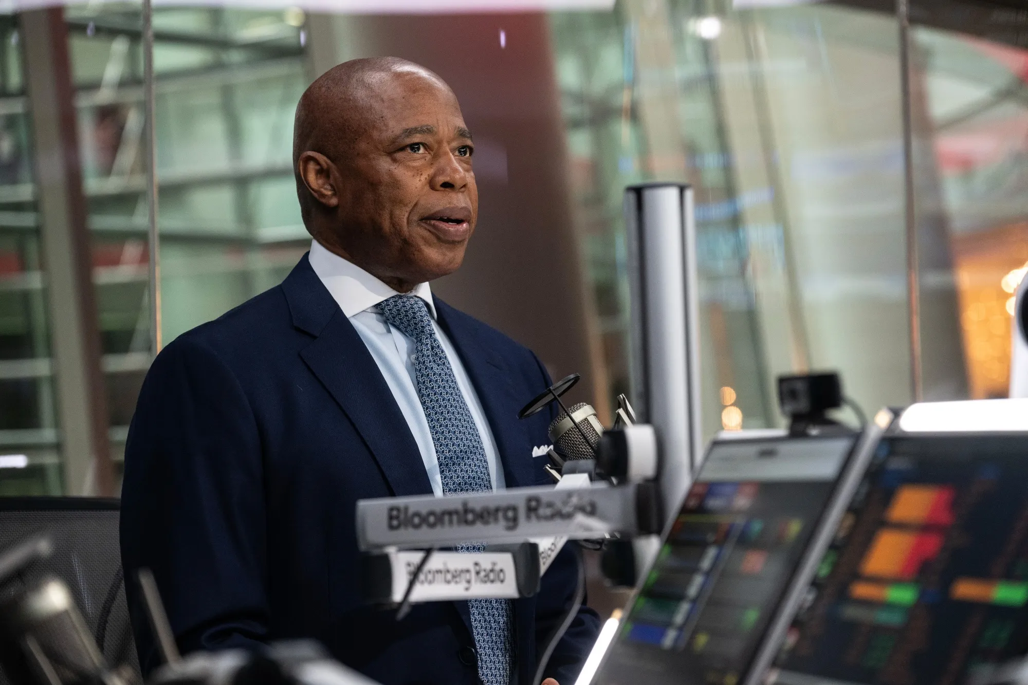 紐約市長埃裏克·亞當斯週四在紐約接受彭博電台採訪。