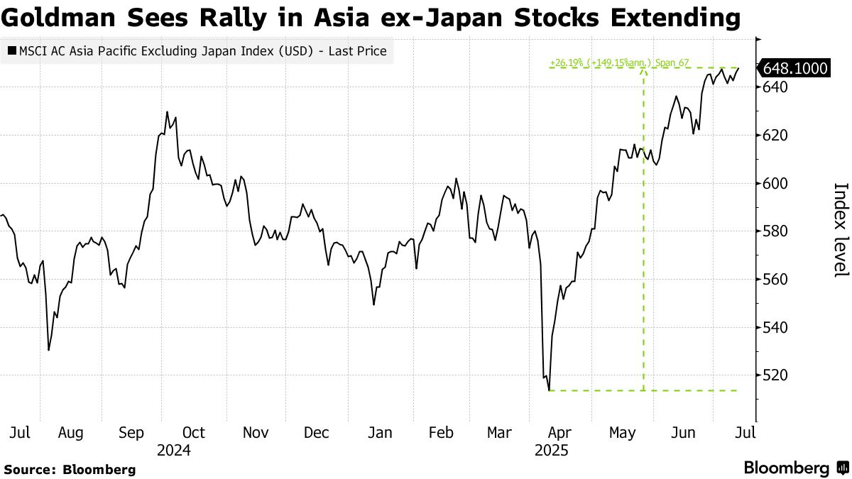 高盛集團策略師上調了對亞洲股市的預測,理由是宏觀環境更為有利且關税政策確定性增強。