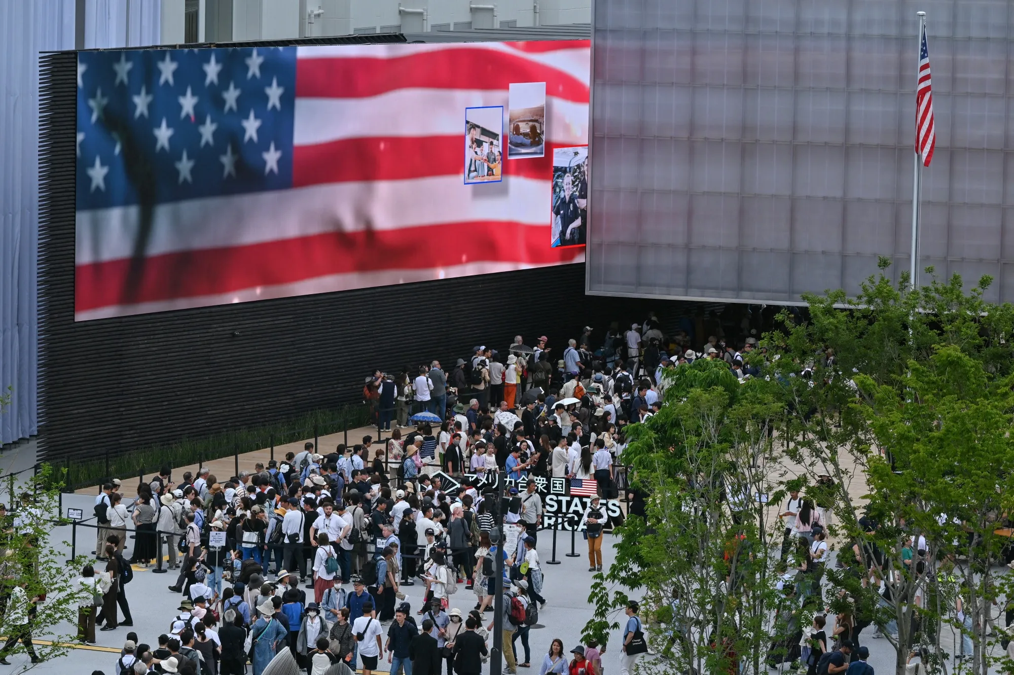 大阪世博會美國館外的參觀者。攝影師:理查德·A·布魯克斯/法新社/蓋蒂圖片社距東京約400公里(250英里)的大阪世博會今年也承擔着外交舞台的功能。據悉,中國副總理何立峯——上月剛率團在倫敦與美國進行貿易談判——將於週五中國國家館日到訪大阪。