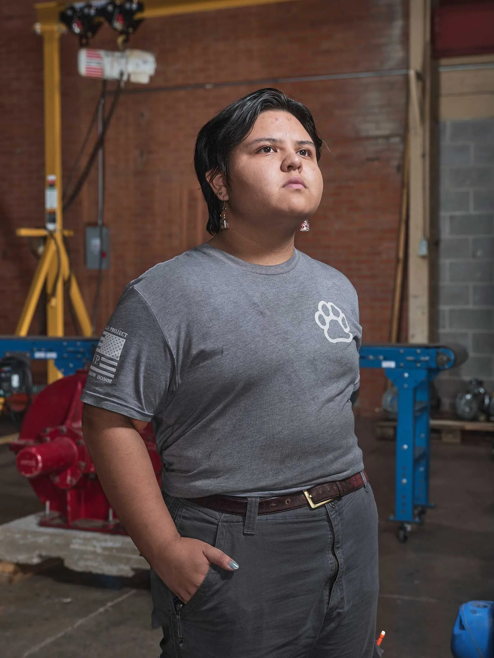 工業系統項目中為數不多的女性學員茉莉·奧利瓦表示:“從沒有人因為我是女性就認為我做不到某些事。“攝影師:安東尼·弗朗西斯為《彭博商業週刊》拍攝19歲的賈斯敏·奧利瓦爾表示,她在意識到高中時熱愛的平面設計行業"過於飽和"後,選擇報讀工業系統專業。(該專業提供的學費返還保障也起了積極作用。)獲得副學士學位後,她計劃在韋科地區就業。“周邊有很多公司直接從我們專業招聘,有些甚至親自來校與我們直接交流,“她説。