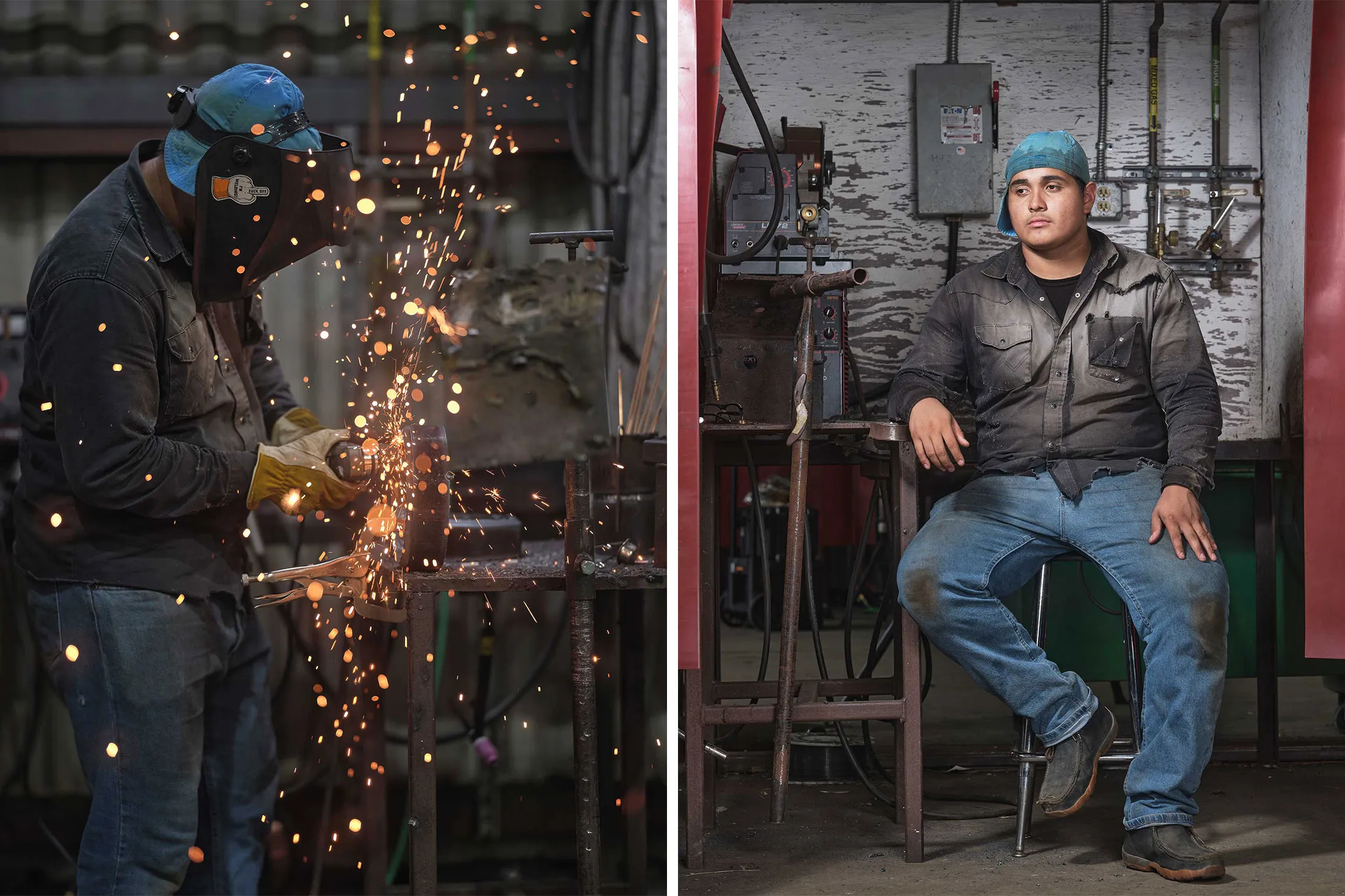 21歲的塞繆爾·加西亞和19歲的韋斯利·格利克在高中時就學習了焊接技術。和該項目的其他學員一樣,他們視焊接為技藝而不僅是職業。“我喜歡動手操作,享受把想法轉化為實用物品的過程,“格利克説道。攝影師:安東尼·弗朗西斯為《彭博商業週刊》拍攝去年,近900名TSTC學生在10個製造項目中獲得了證書或學位。斯諾表示,他們中的大多數人將毫不費力地找到一份高薪工作。“如果你沒有收到多份工作邀請,“他説,“那可能是你做錯了什麼。”